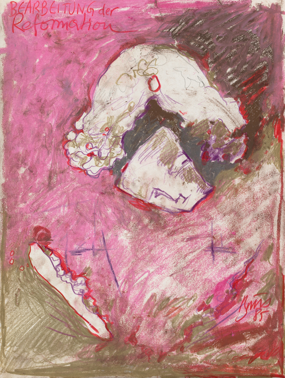 SignaturVS li. ob. betit.: "BEARBEITUNG der Reformation", re. un. sign., dat.: "Brus 85"