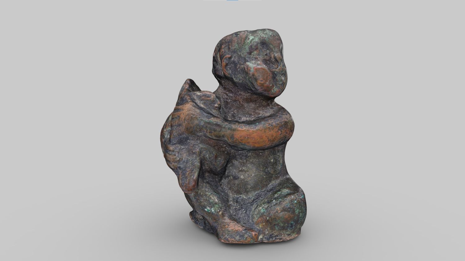 Statuette eines Knaben mit Vogel