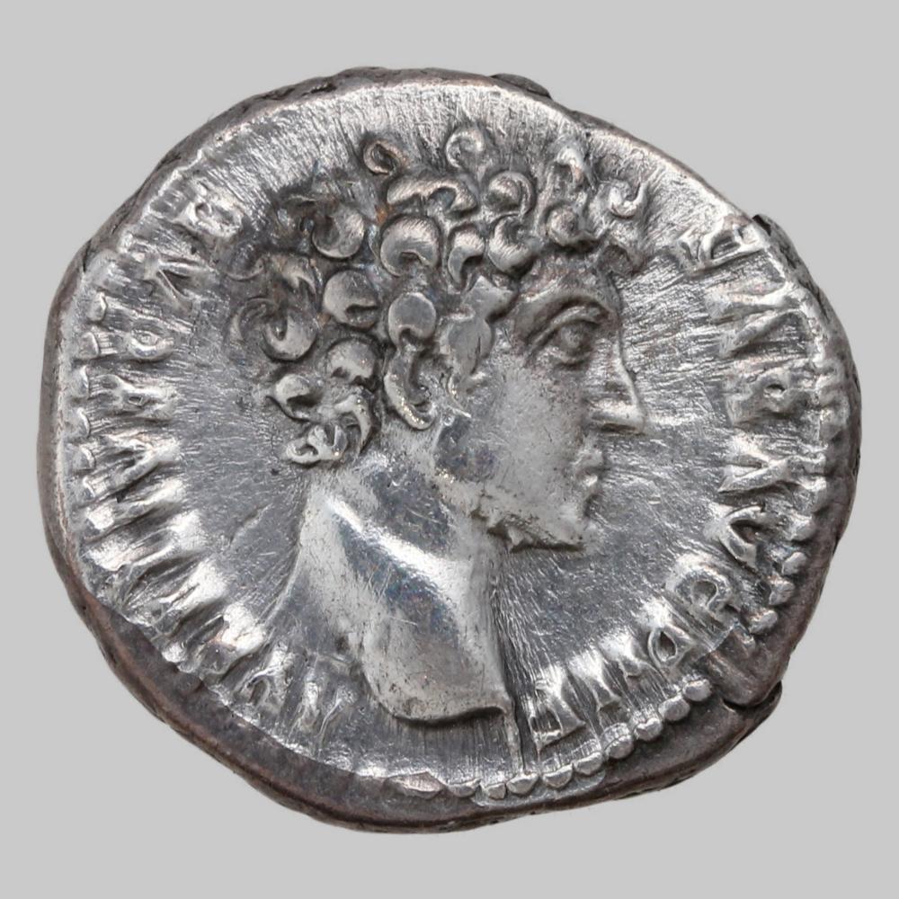 Avers: AVRELIVS CAESAR AVG PII F; Paludamentrest vor und hinter dem Hals; nach rechts.