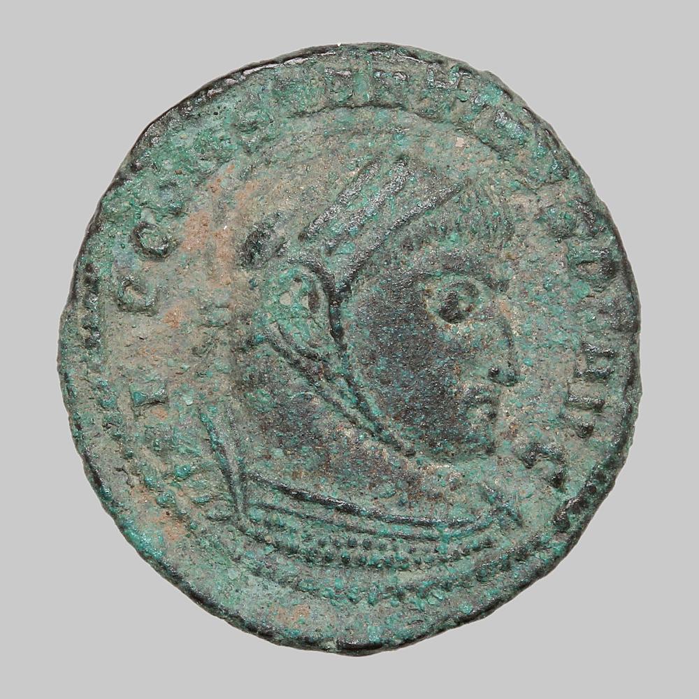 Gepanzerte Büste mit Helm und Lorbeerkranz n. r.