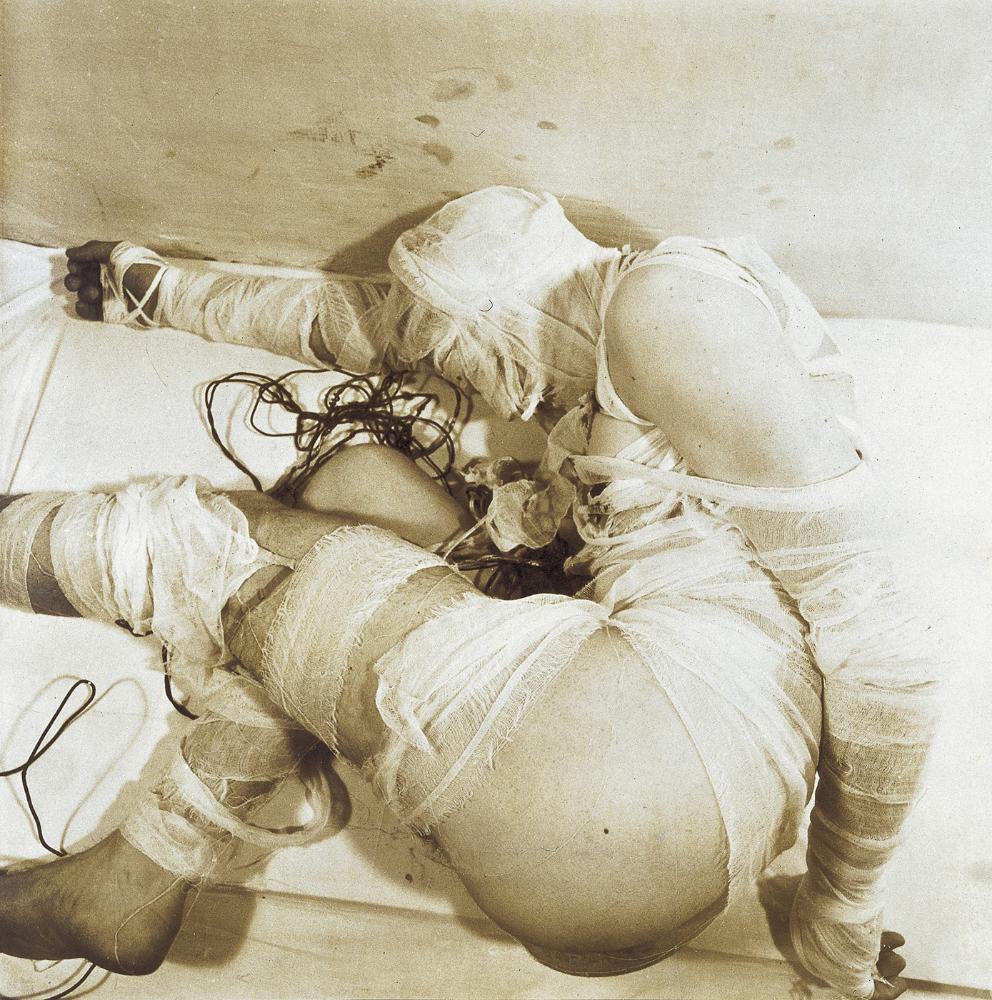 1965 führte Rudolf Schwarzkogler fünf Aktionen durch, die erste fand noch in Zusammenarbeit mit Hermann Nitsch statt. Die weiteren entwickelten sich dagegen zu den ersten autonomen aktionistischen Arbeiten Schwarzkoglers. Als Ort für diese dokumentierten Aktionen fungierte die Wohnung Heinz Cibulkas, der dem Künstler auch als Modell zur Verfügung stand. Die erste fand noch unter Augen des Publikums statt und wurde farbig aufgenommen. Bei den späteren Aktionen entwickelte Schwarzkogler seinen für ihn typischen Stil der Dokumentation in schwarz-weiß und ohne Publikum. Der eigenständige Aktionstypus Schwarzkoglers ist durch die verkürzte Formensprache und die perfekt fotografisch umgesetzte Bildsprache gekennzeichnet. Es entwickelte sich ein extremer Verknappungs- und ästhetischer Verdichtungsprozess. Die Objektsymbolik im klinisch weißen Raum vermittelt Verletzungs- und Kastrationsthematiken. Sein Ziel war die Forcierung der Intensität des Erlebens.