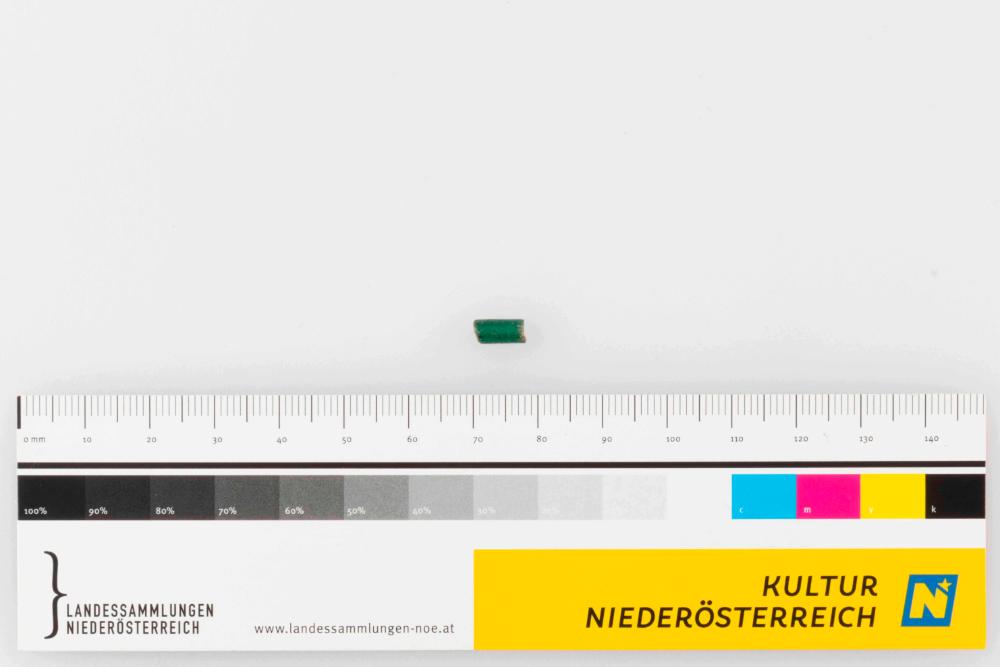 Kleine, hellgrüne zylindrische Perle, längsgelocht.
