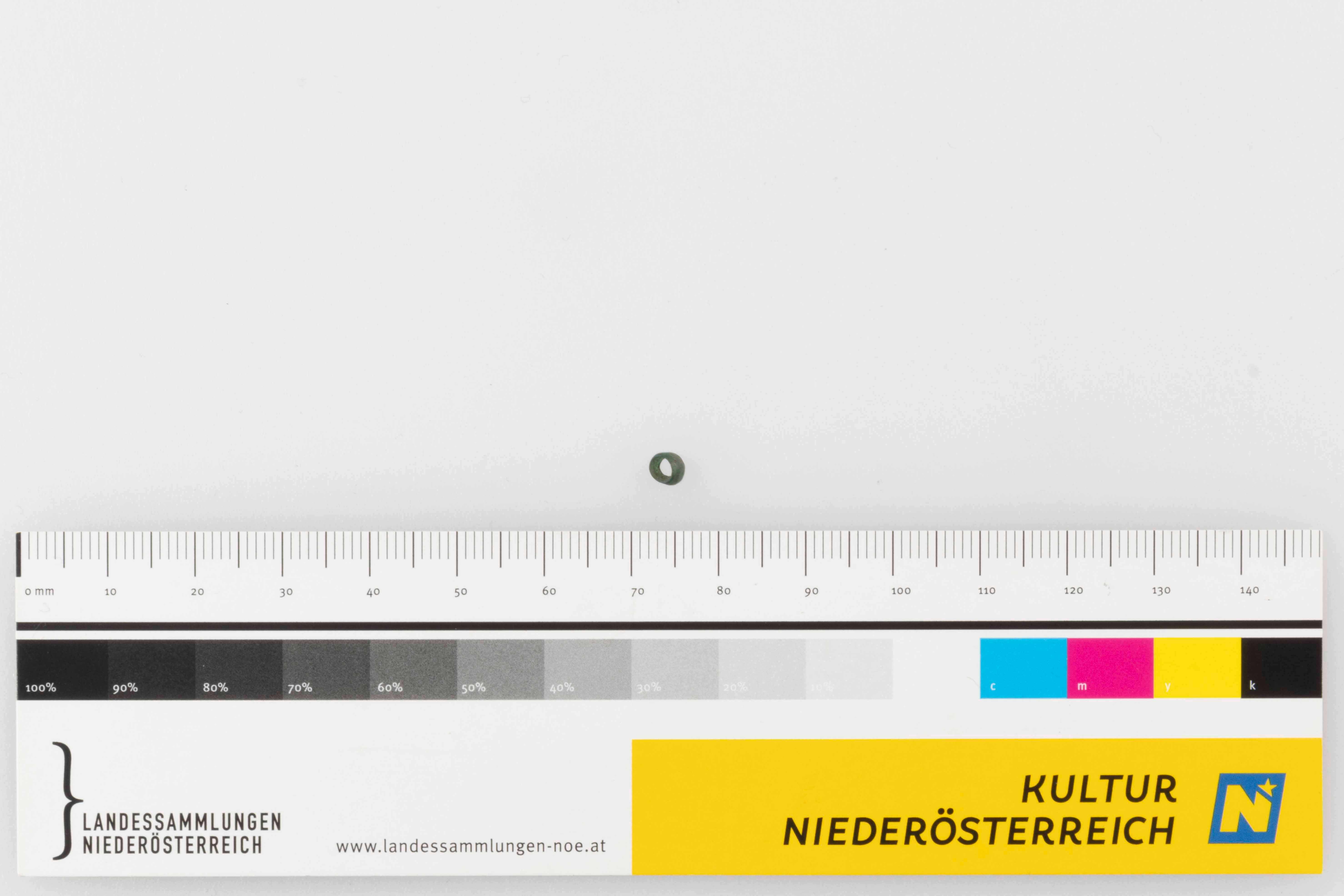 Kleine, hellgrüne zylindrische Perle, längsgelocht.