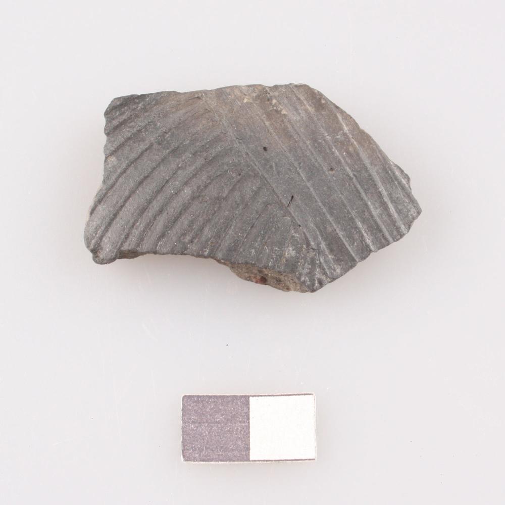 Wandstück eines germanischen Gefäßes, verziert mit schräg angeordneten Riefengruppen
