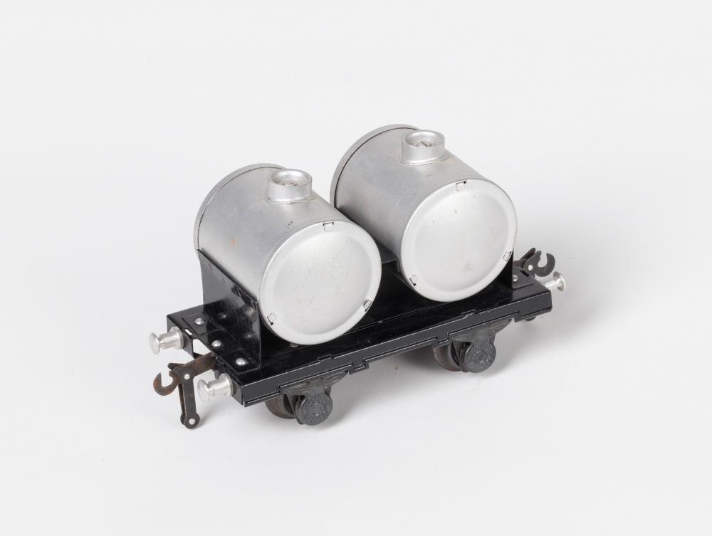 Milchtransportwagen mit abnehmbaren Fässern, Nr. 21 312, 2 achsig, Spur 0, Markenname Ditmar, Fa. Austria Emaillierwerke, Lampen- und Metallwarenfabriken AG, kurz Austria Email