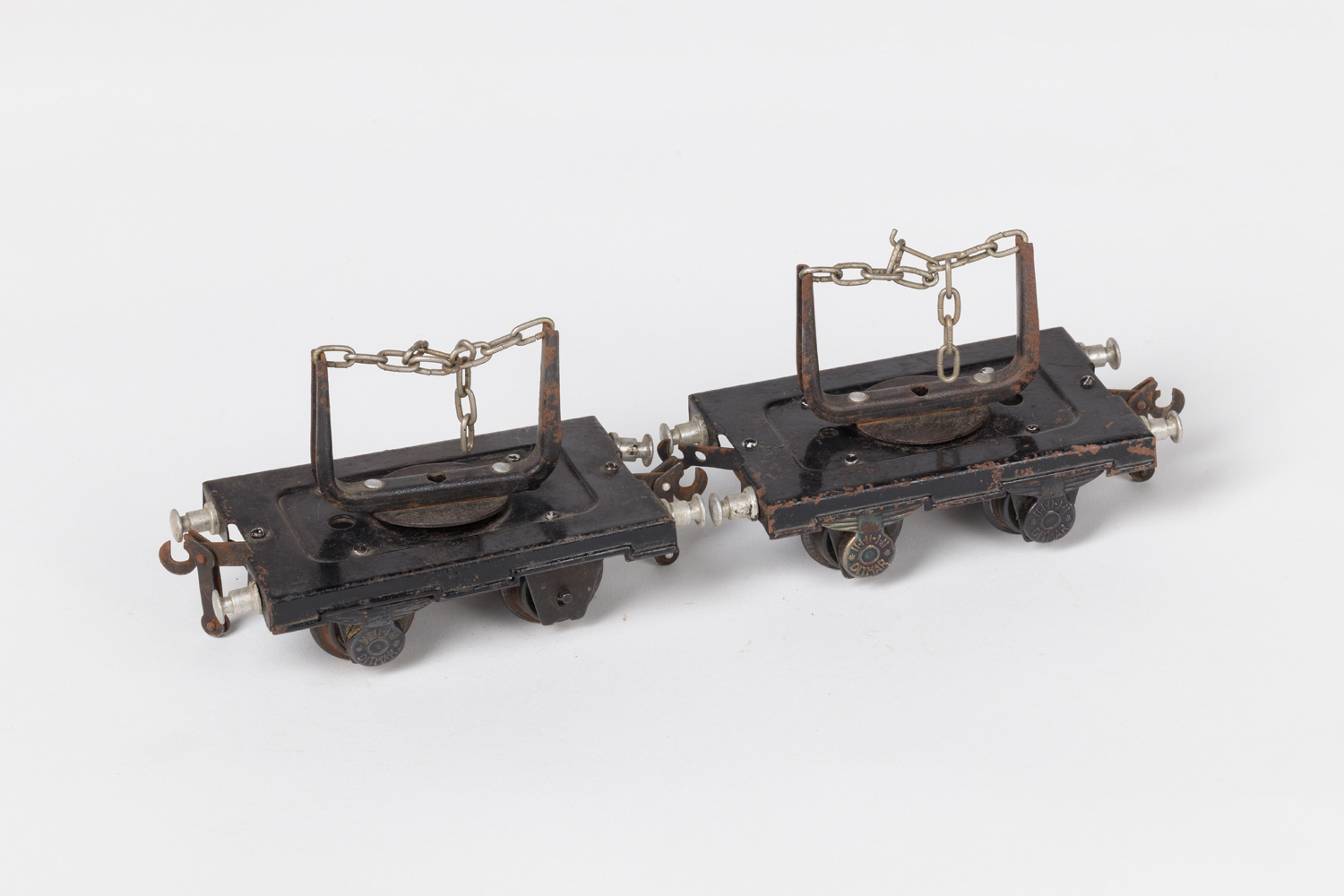 Güterwaggon, Langholzwagen für Schnittholz, erste Variante von 1948, 4 achsig, Spur 0, Markenname Ditmar, Fa. Austria Emaillierwerke, Lampen- und Metallwarenfabriken AG, kurz Austria Email