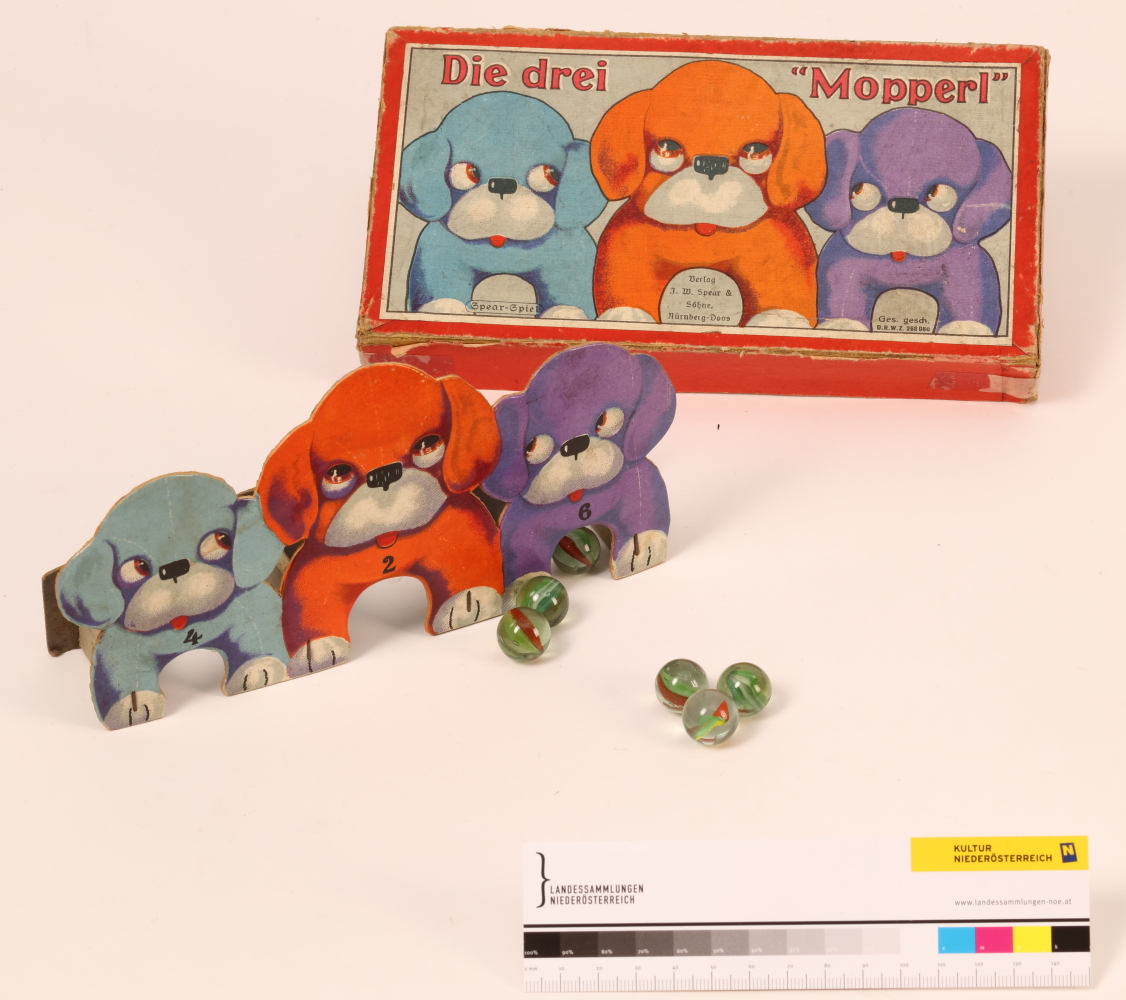 Geschicklichkeitsspiel „Die drei Mopperl“, Originalverpackung, Verlag J.W. Spears & Söhne Nürnberg