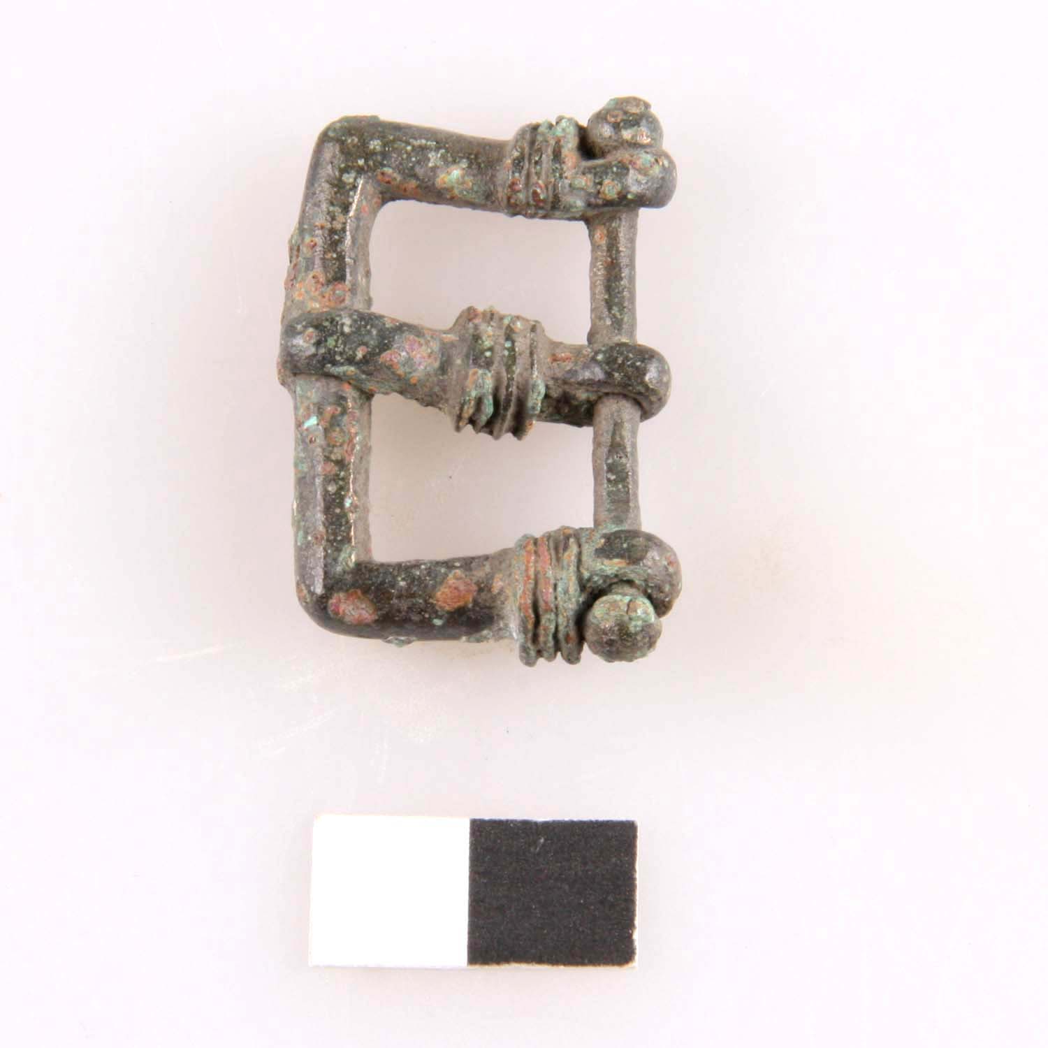 Gürtelschnalle mit rechteckigem, verziertem Rahmen mit Dorn