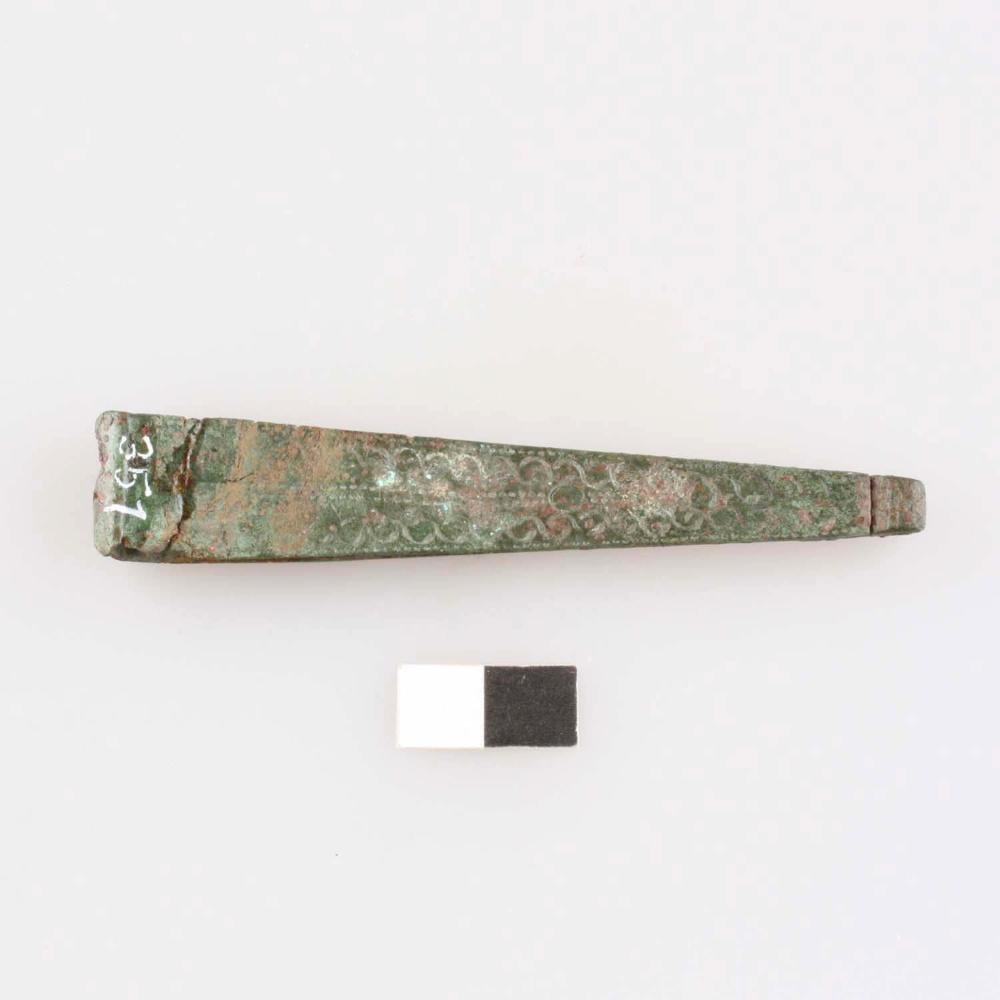 Große Pinzette aus Buntmetallblech, verziert