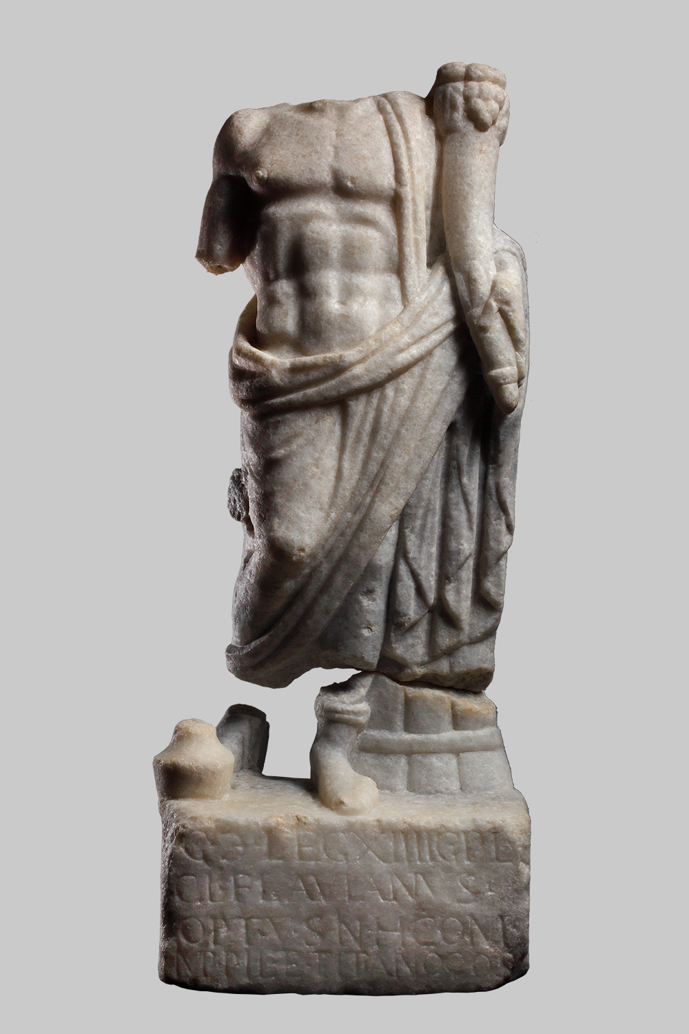 Die sehr flache Darstellung eines Genius centuriae mit Patera und Füllhorn wurde von einem Offizier zu Ehren seiner Truppe gestiftet. Die Weiheinschrift auf der Plinthe lautet: