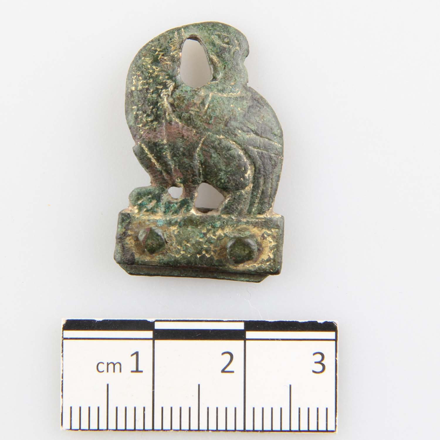 Beschlagstück mit Resten von Vergoldung; in Form eines Adlers