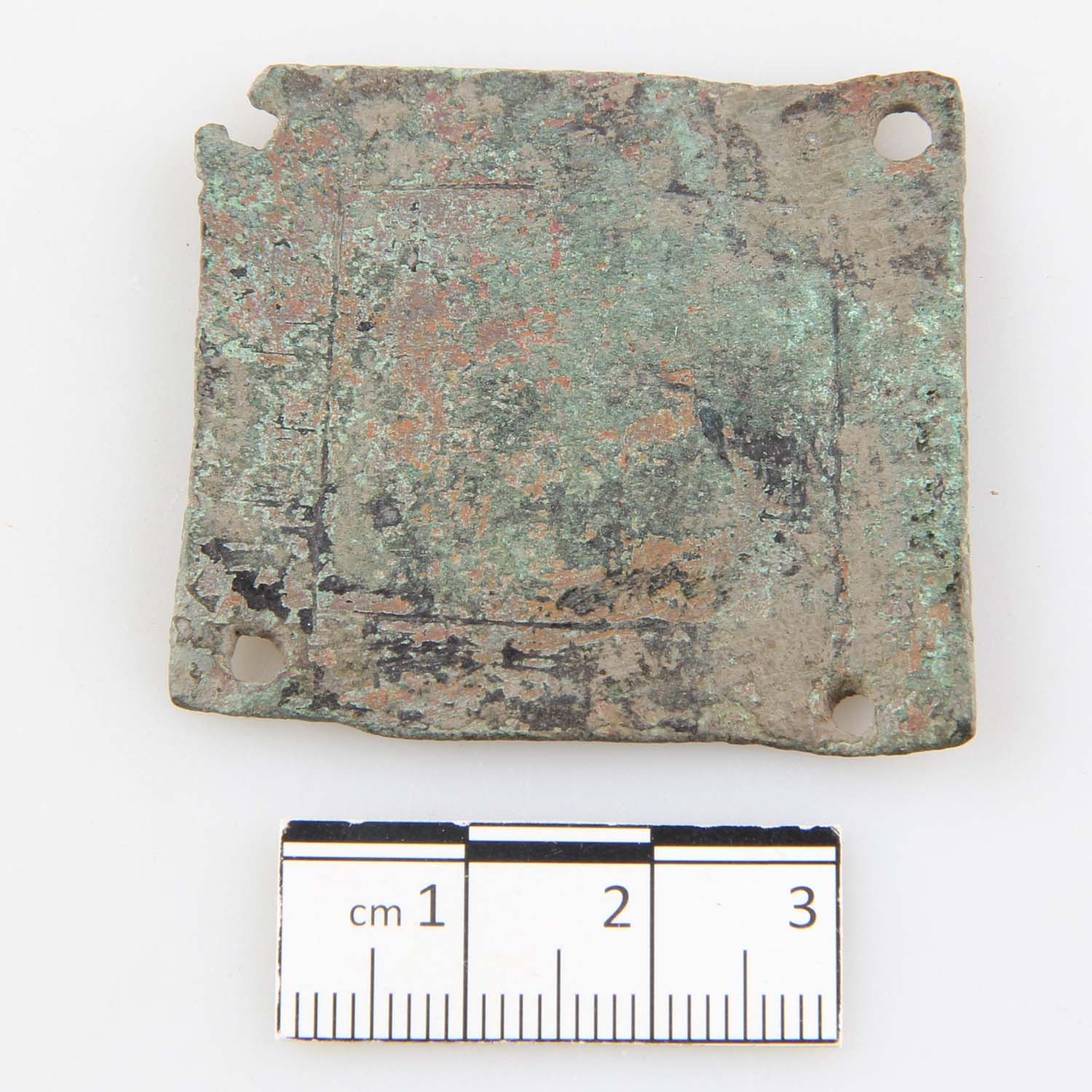 Quadratischer Beschlag, an jeder Ecke gelocht