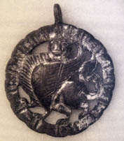 Buntmetallanhänger, durchbrochen und vergoldet, Darstellung eines Fabeltieres (Greif)