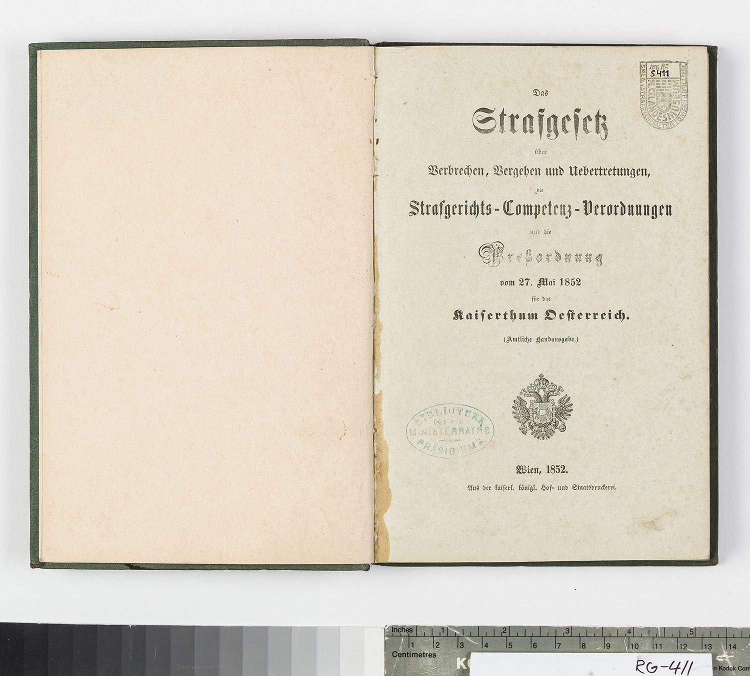 Das Strafgesetz über Verbrechen, Vergehen, Übertretungen. Die Strafgerichts-Competenz-Verordnungen und die Pressordnung vom 27. Mai 1852 für das Kaiserthum Österreich.
