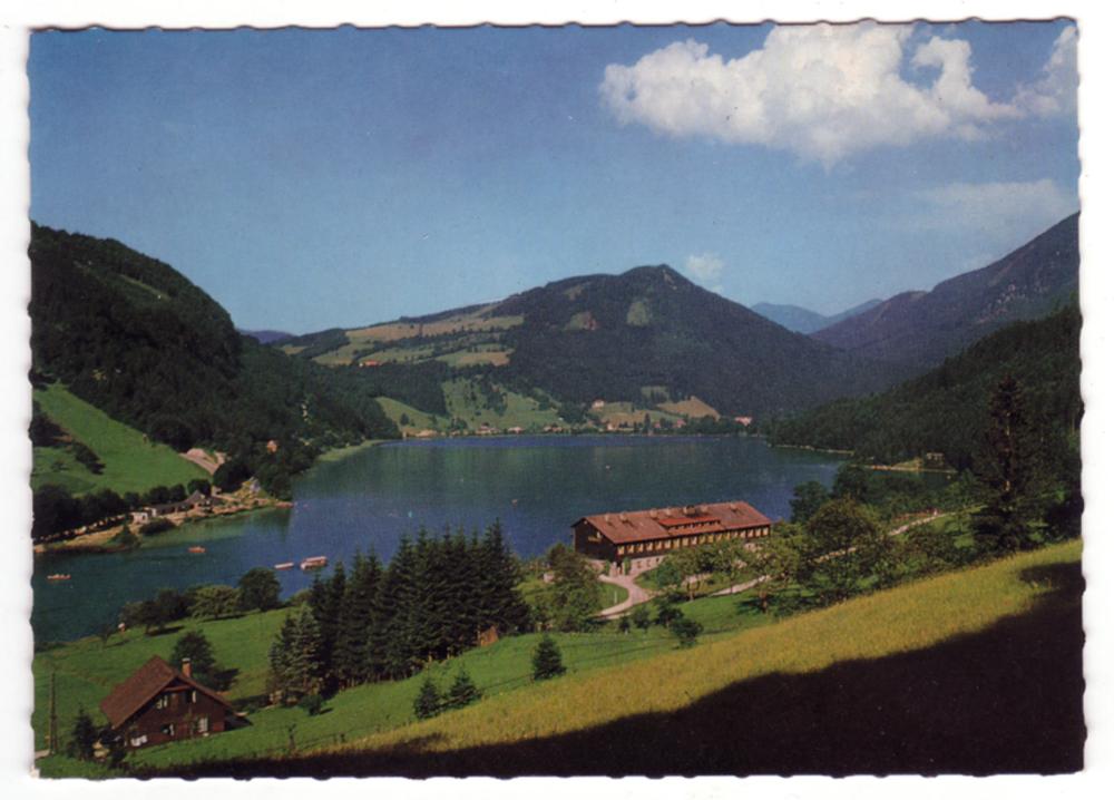 Panoramaansicht, im Bildvordergrund das Landesjugendheim, im Hintergrund der See.