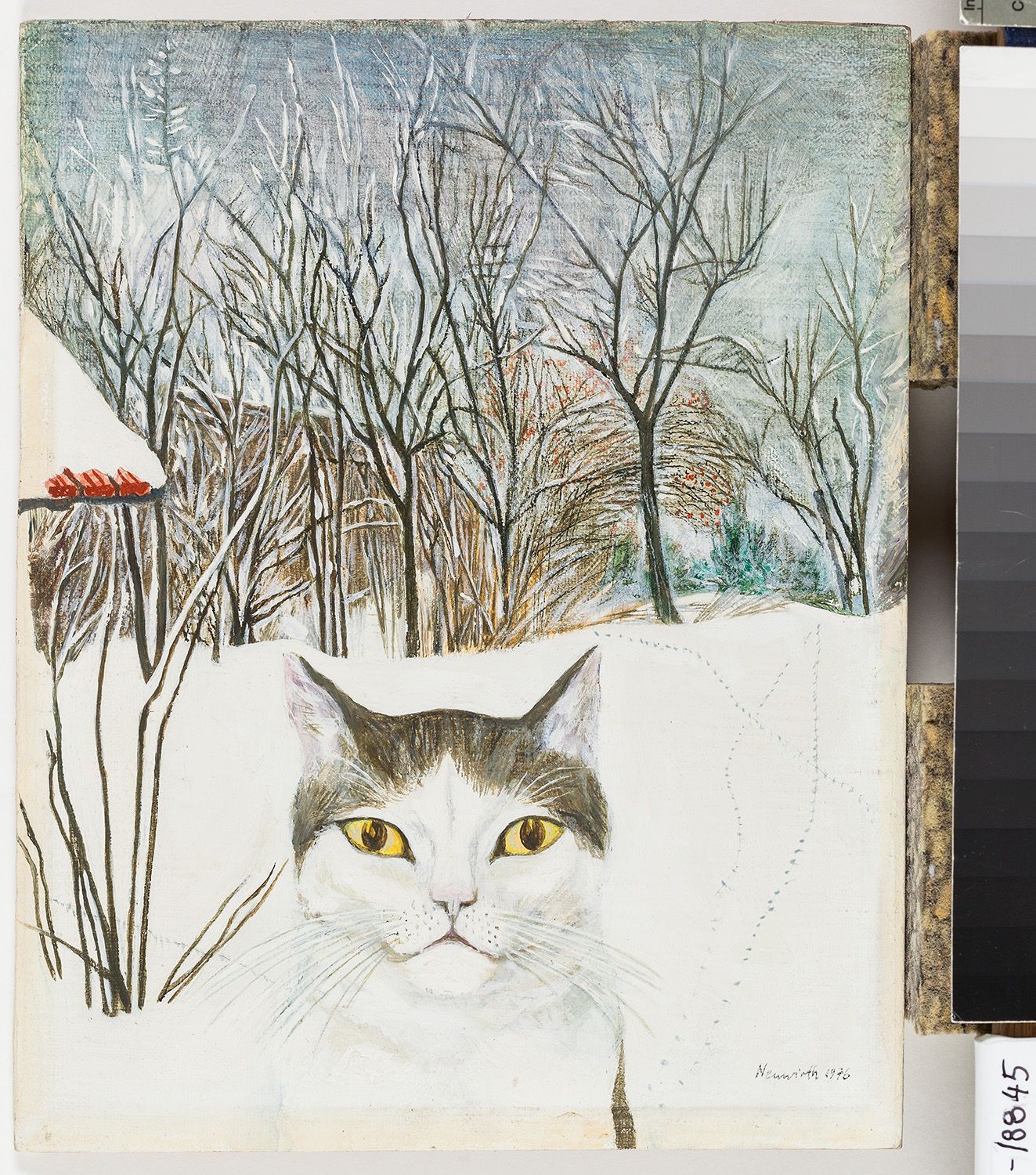 SignaturRS sign., bet., dat.: "ARNULF NEUWIRTH, Porträt des Katers Scheckerl / Öl auf Leinwand auf Hartfaser, 1976"
