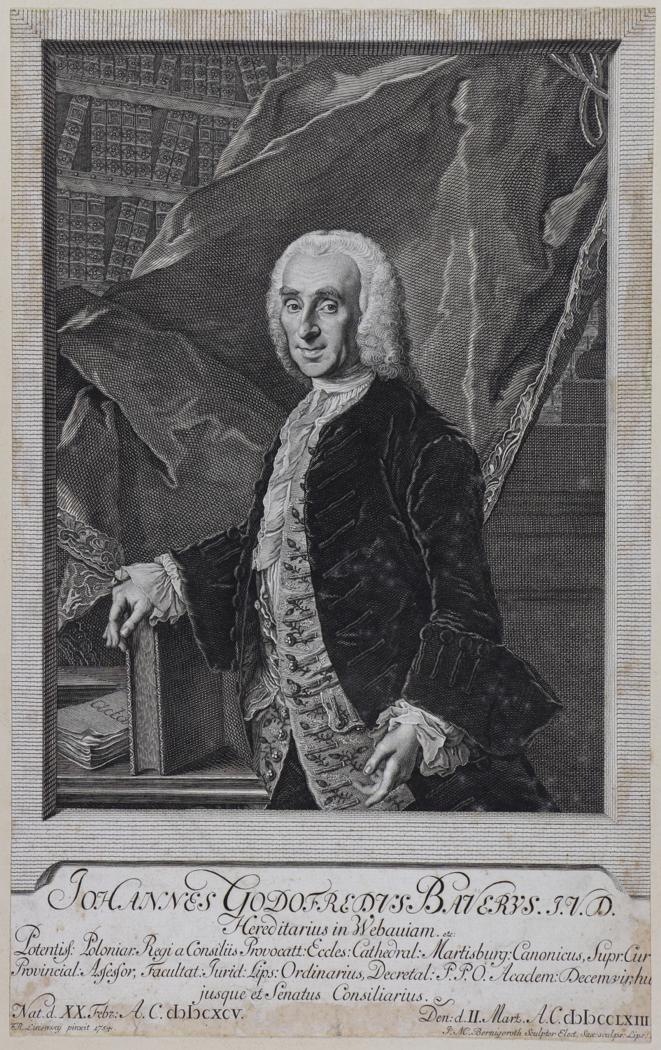 SignaturF. R. Lisiewsky pixit 1754 - I.M. Berningeroth, Sculptor Elect: Sax: sculps: Lips:
