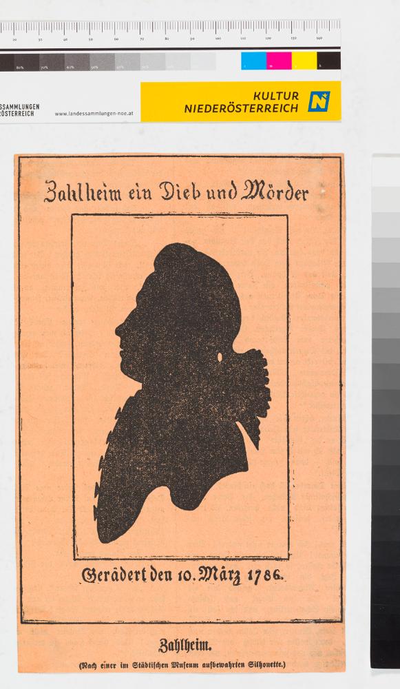 Silhouette Franz von Zahlheim, der am 10.3.1786 wegen Mordes an Barbara Ambrokin hingerichtet wurde.
