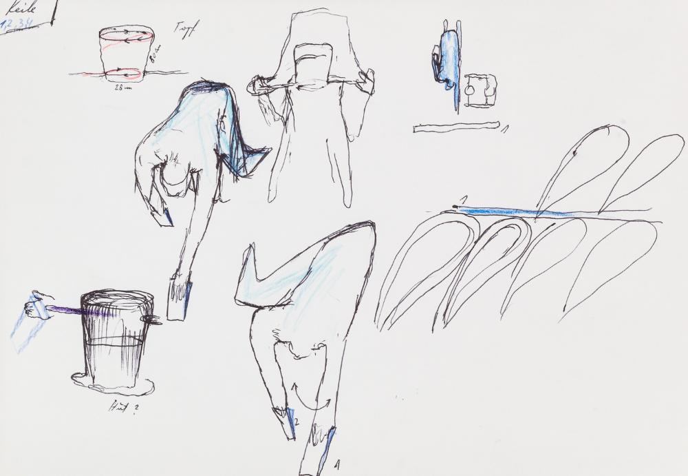 Kugelschreiber, Farbstift auf Papier