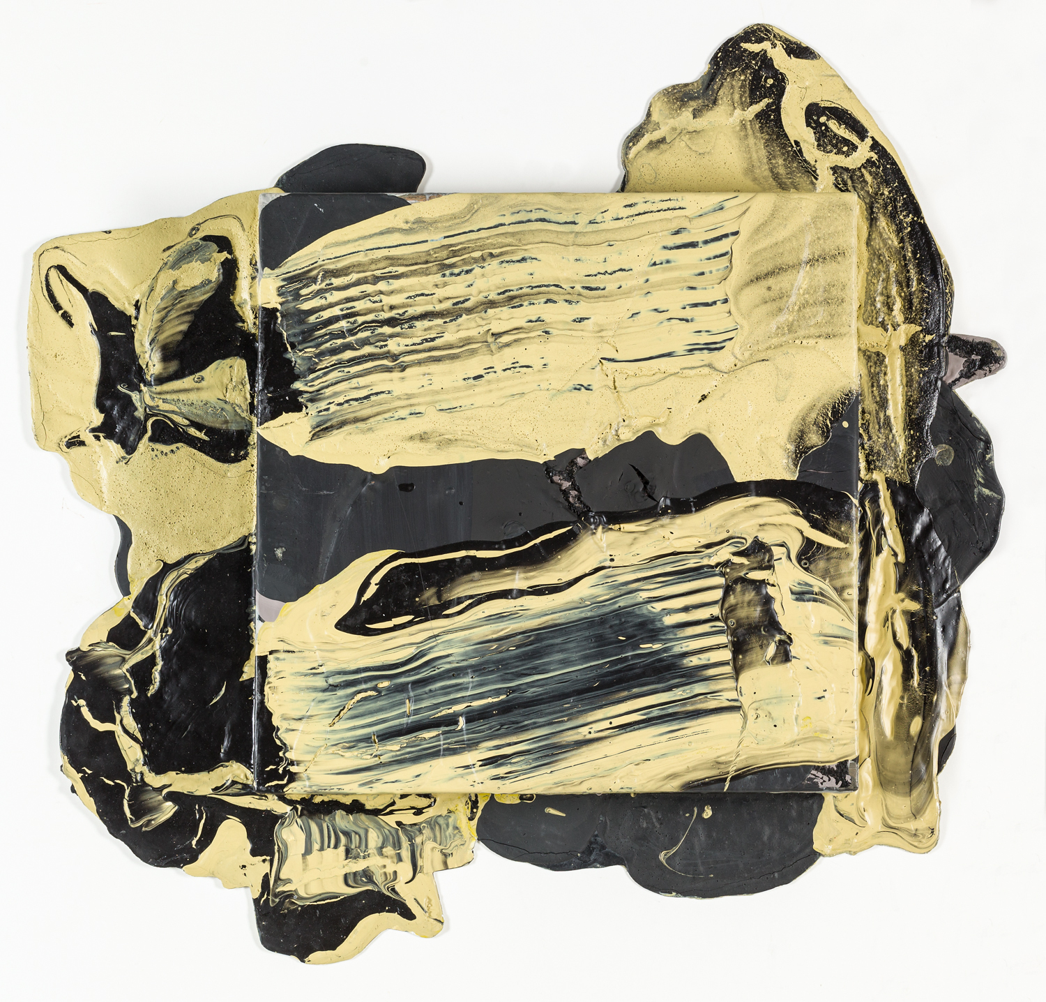 Anfänglich einem figurativen Realismus verpflichtet, hat sich das künstlerische Interesse Peter Neuwirths seit Mitte der 1990er-Jahre hin zu einer zunehmend gestisch-abstrakten Malerei verlagert, gepaart mit einer großen Faszination für die materiellen Qualitäten des Mediums. So sammelt er kostbare, seltene Pigmente, die ihm – mit Acrylbinder versetzt – den Rohstoff für wahre Farbexzesse liefern. Jedoch geht dies keineswegs mit intensiver Leuchtkraft einher, sondern findet vielmehr in einer schlammartigen Masse Niederschlag. Diese „Farbflutungen“, wie der Künstler sie nennt, entstehen am Boden liegend auf quadratischen oder trapezförmigen Leinwänden, die mehrmals mit Farbe übergossen und mit verschiedenen, teils selbstgebauten Malwerkzeugen überarbeitet werden, sodass sich die einzelnen Farbschichten direkt auf der Leinwand vermischen und die gestischen Spuren des malerischen Prozesses deutlich sichtbar bleiben. Entscheidend ist, dass die über die Leinwand hinwegfließende Farbe mittels einer rückseitig angebrachten, der Stabilität dienenden Aluminiumplatte jeweils zu einem integrativen Bestandteil des fertigen Bildes wird und ihm einen signifikanten objekthaften Charakter verleiht. Neuwirth selbst spricht demzufolge auch von „skulpturaler Malerei“, die mit ihren Farbschlieren und -seen Assoziationen an fließende und ob ihrer Dunkelheit unergründlich tiefe Gewässer weckt, die ihren angestammten Uferverlauf verlassen haben. Das Transitorische, das dabei mitschwingt, steht nicht zuletzt für den Zyklus der Natur, den ewigen Kreislauf des Werdens und Vergehens.