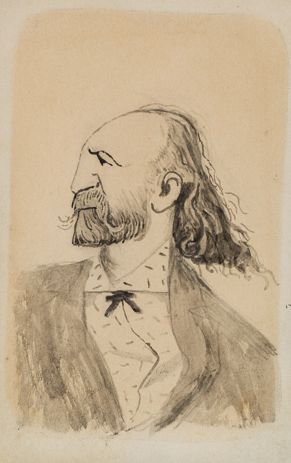 aus Serie von Porträtkarikaturen von Malern, Bildhauern, Architekten, Musikern und Schauspielern aus Umkreis von Hans Makart in Wien