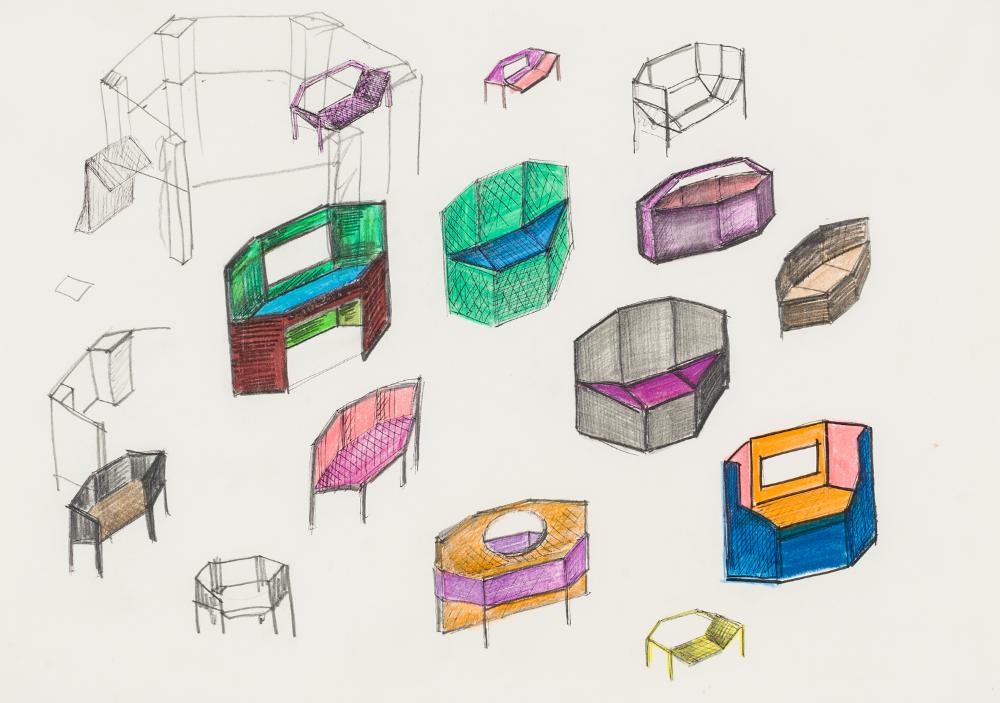 Bleistift, Buntstift und Faserstift auf Papier