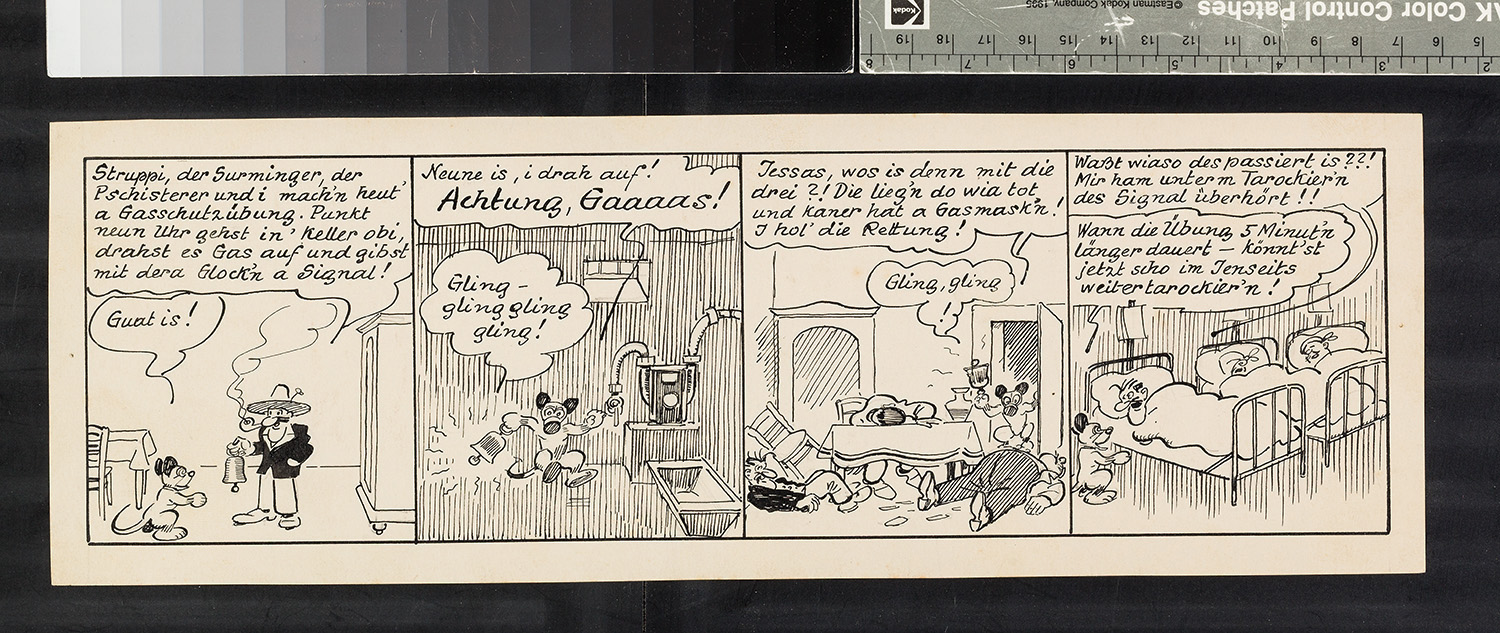 Seicherl macht mit seinen Freunden eine Gasschutzübung.