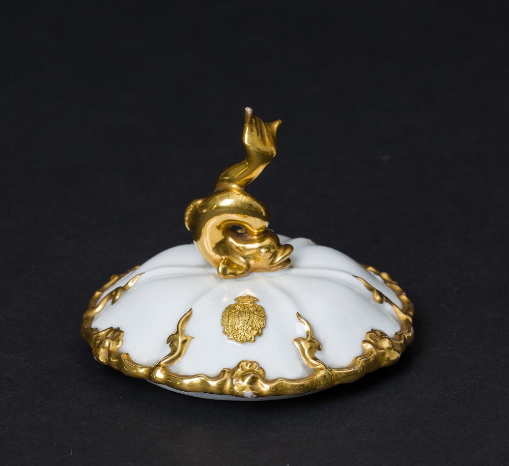 Kaiser Ferdinand / Kaiser Franz Joseph I. und Kaiserin Elisabeth - Kaiserliches weiß-goldenes Service. Steckdeckel zur Teekanne