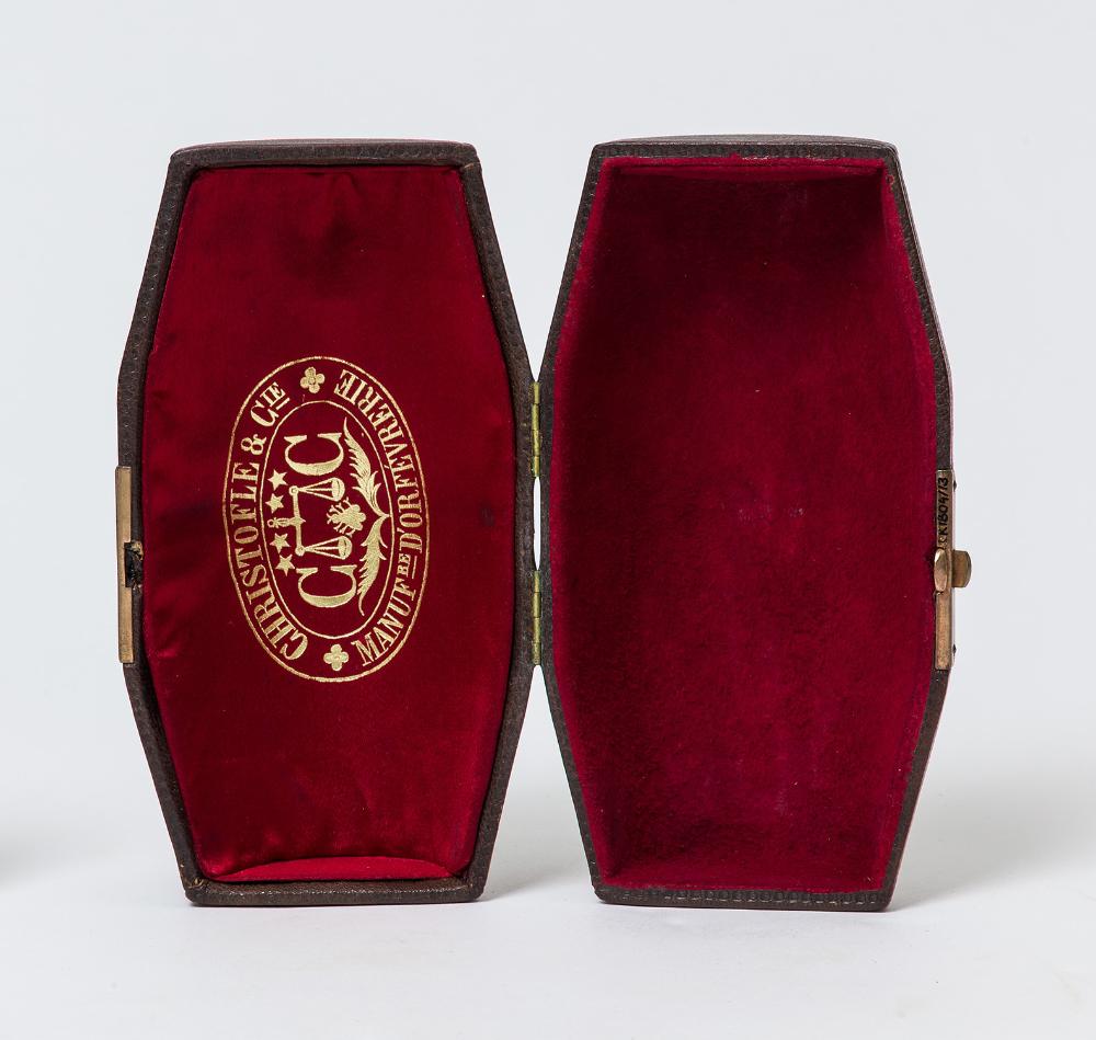 Technische DetailsHolz (gedrechselt, mit Leder kaschiert und Seide ausgeschlagen)