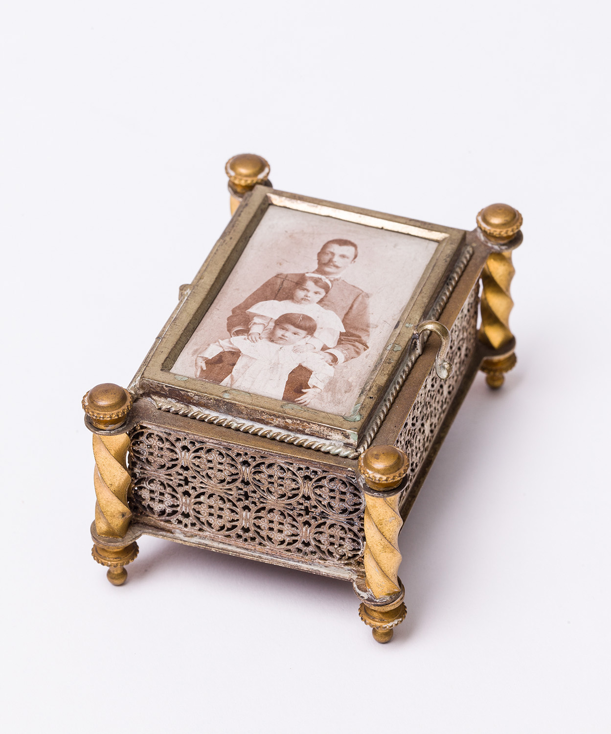 Kaiserlicher Hof - Hoftafelbonbonniere. Dose mit einer Photographie von Erzherzog Leopold Salvator mit seinen beiden Töchtern Erzherzogin Dolores und Erzherzogin Immaculata