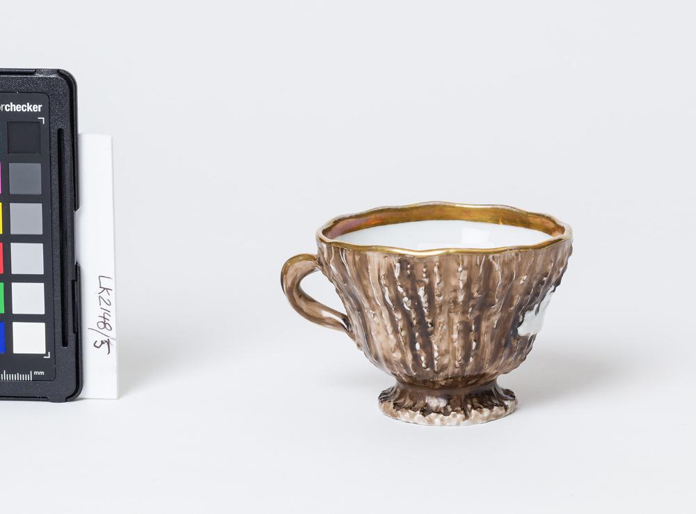 Kaiserlicher Hof - Kaffeetasse, aus dem Krickerlservice der kaiserlichen Jagdhäuser. Bestehend aus Kanne, Zuckerdose und zwei Tassen mit Untertassen, imitiertes Krickerldekor sowie Hirsch und Rehbockdarstellungen, Böhmen, um 1860.