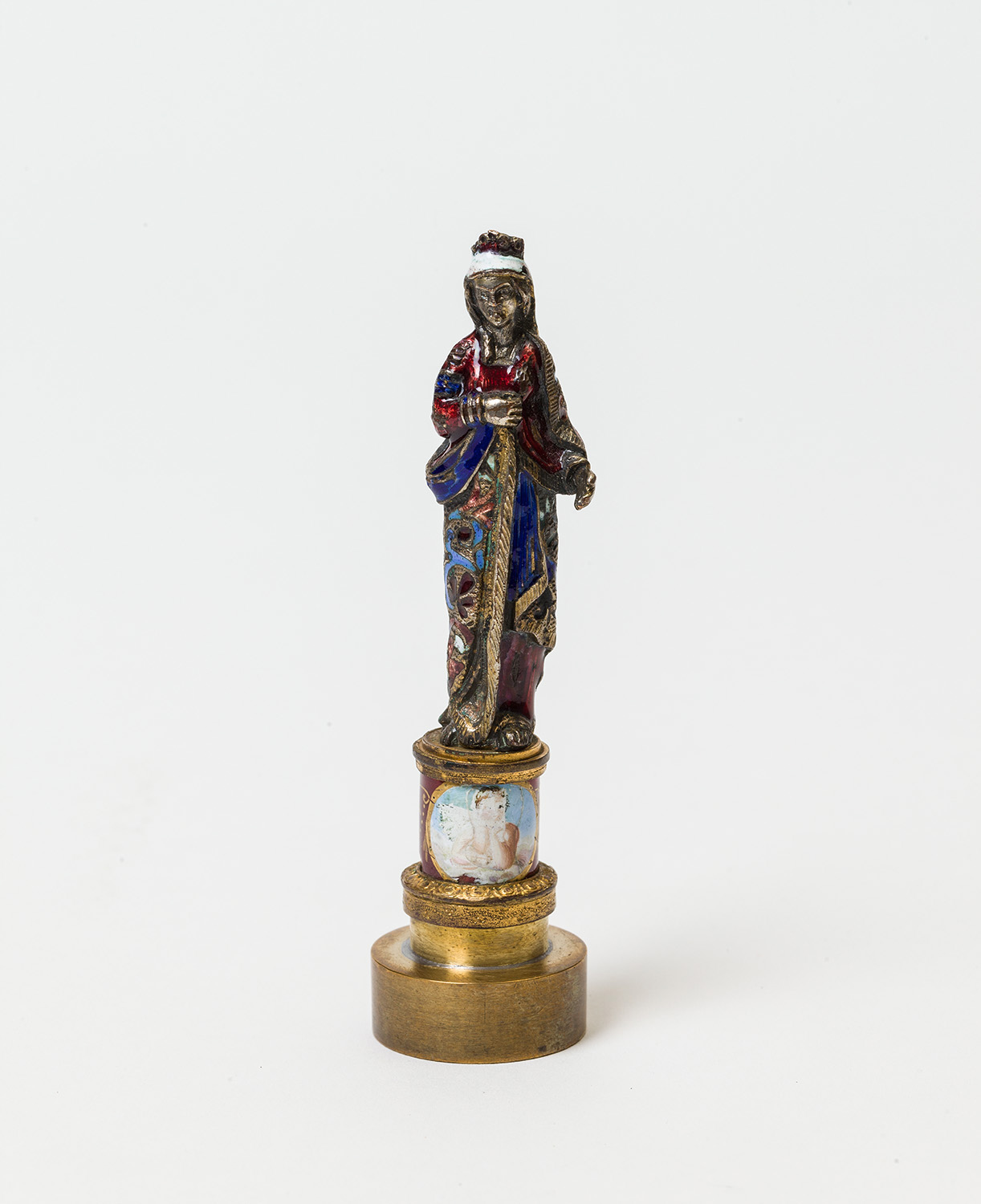 Material/TechnikMessing, Silber vergoldet, Email, Emailmalerei