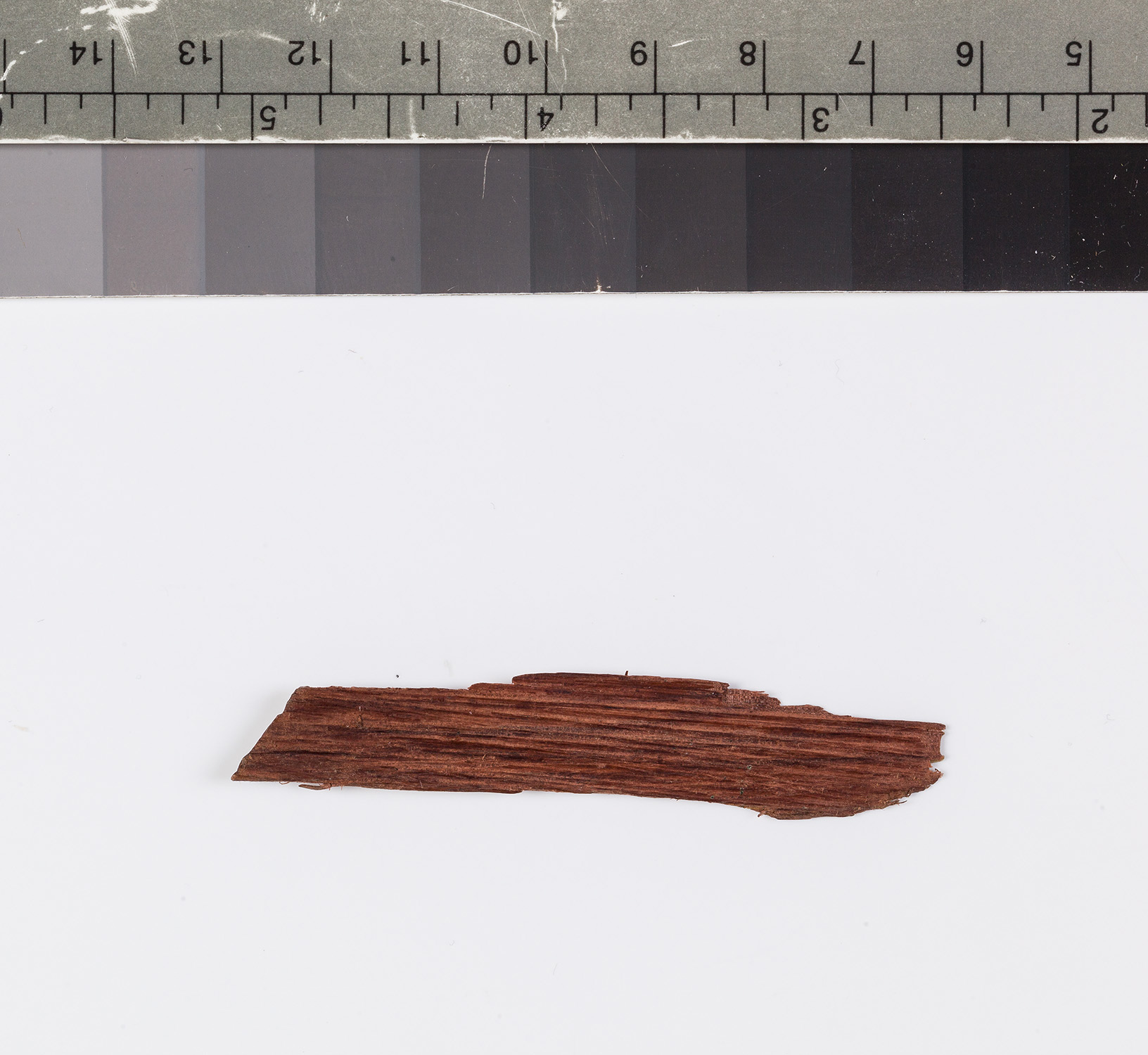 Holzspan vom Sarg des Kaisers in der Kapuzinergruft, vor Einsetzung in den Metallsarg. Beiliegend zwei Bestätigungsschreiben (Zettel, Kuvert)
