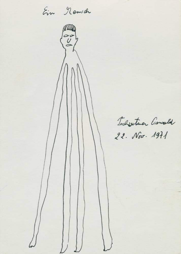 SignaturVS. oben bez., re. sign. u. dat.: "Ein Mensch, Tschirtner Oswald 22. Nov. 1971"