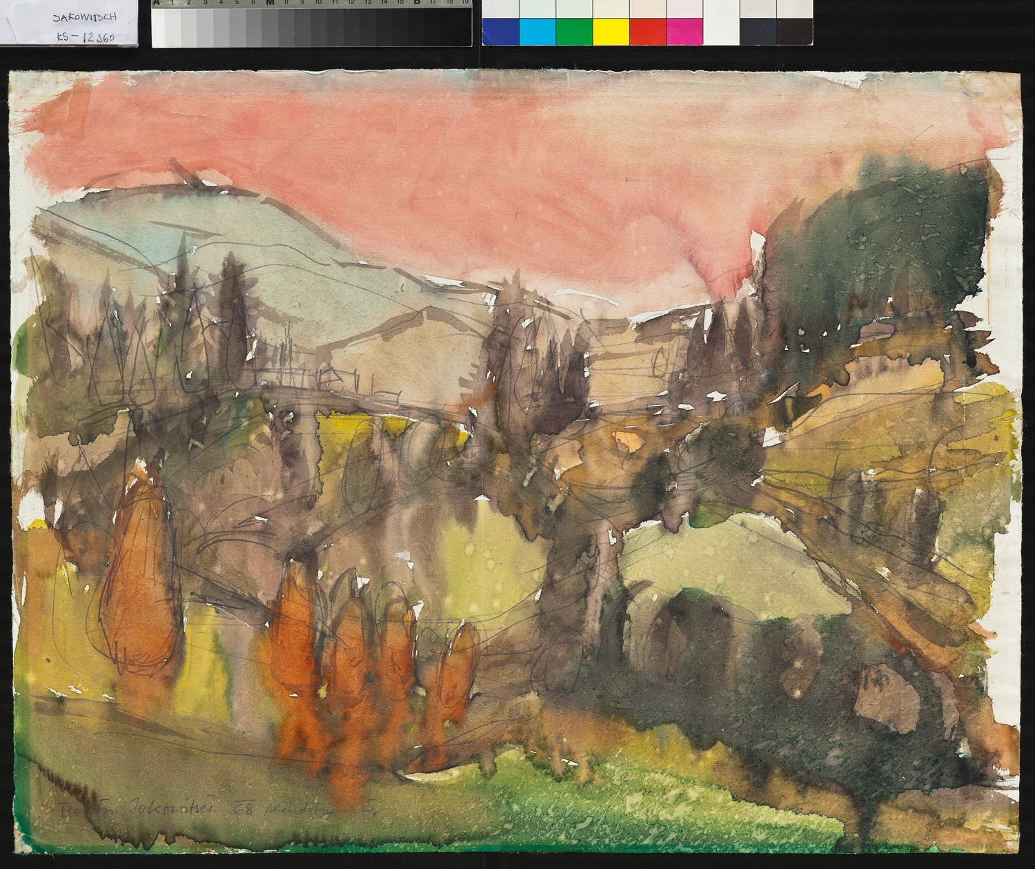 Signaturli. unten sign., dat. und bez.: "Florian Jakowitsch 68 Abendstimmung"