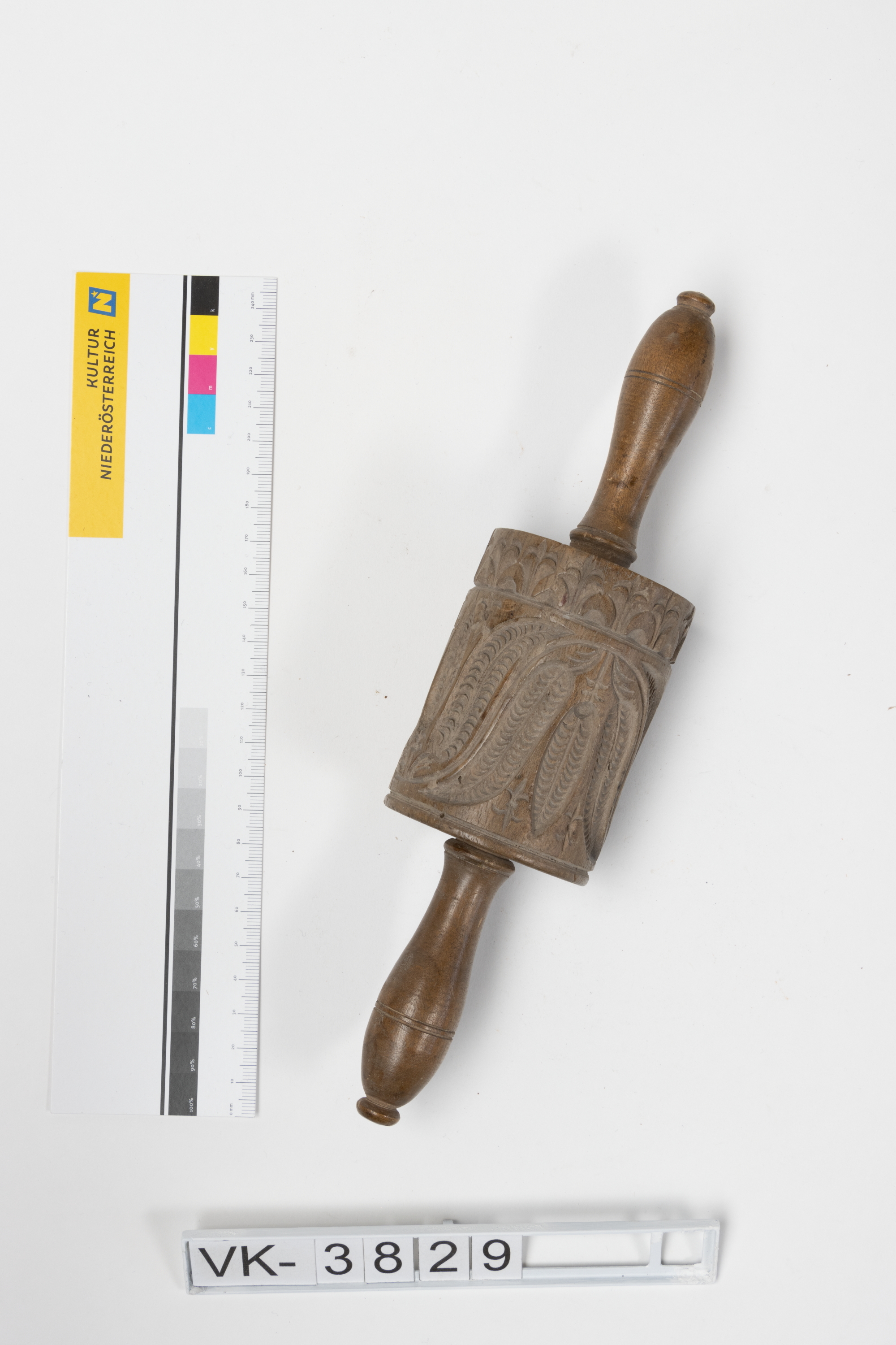 Rundes Lebzeltermodel mit umlaufendem floralen Motiv und zwei Griffen.