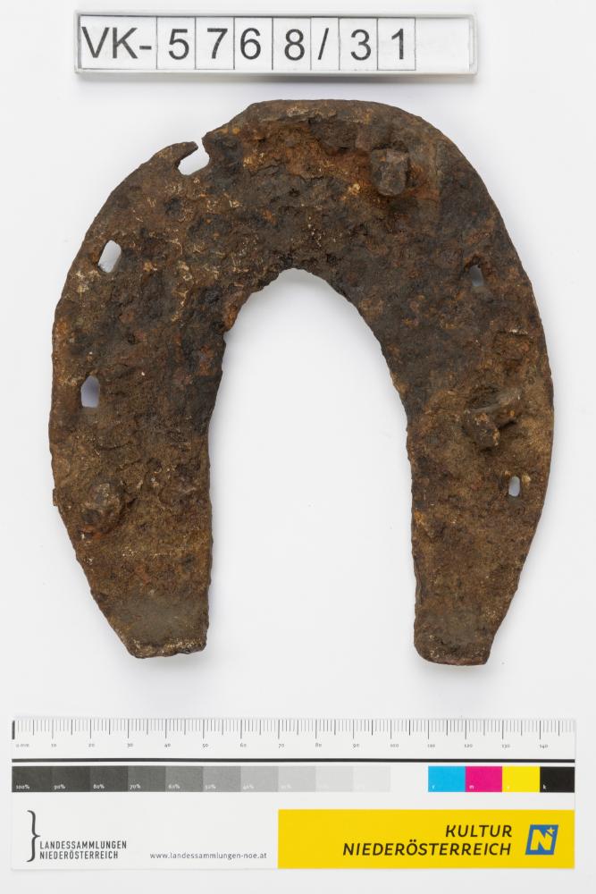 Hufeisen mit Löchern für Nägel. Laut Inventarbuch ein großes Eisen, den "Hadersdorfer" Eisen entsprechend.