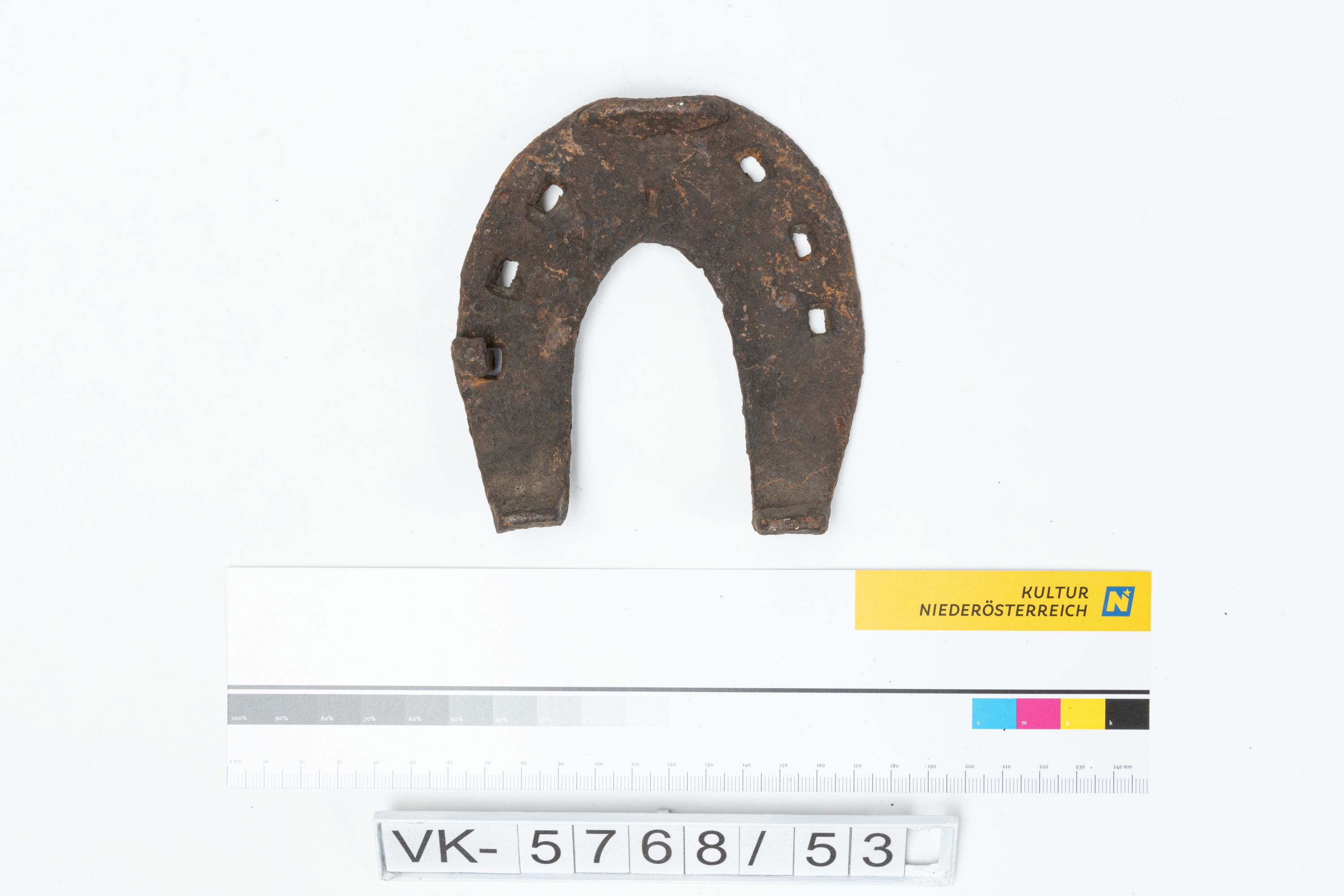 Hufeisen mit Löchern für Nägel. Laut Inventarbuch mit Schmiedezeichen.