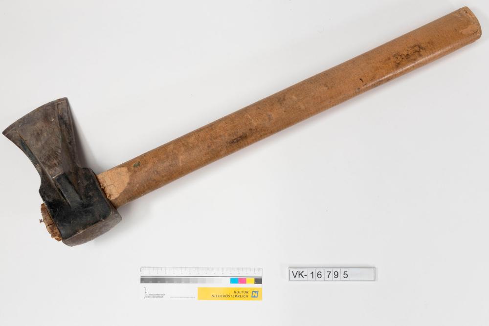 Spaltaxt mit geradem Holzstiel.