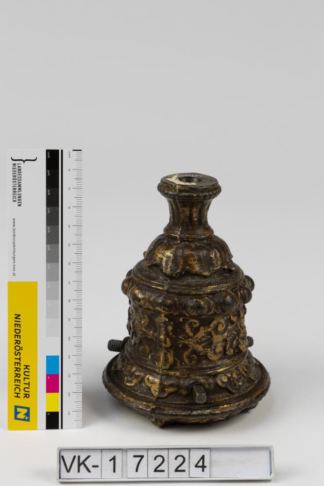 Kelchförmiger ornamental verzierter Christbaumständer mit Spannschrauben als Aufsatz für einen Plattenspieler mit Dorn wie VK-9251.