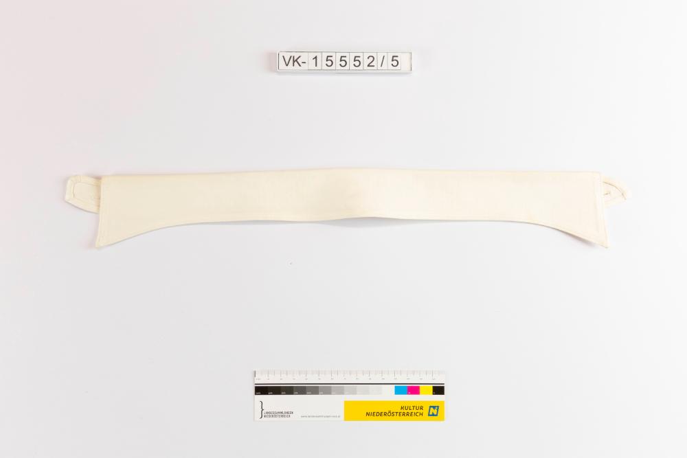 Hemdkragen (Spitzkragen) aus beigem Baumwollstoff. Der Kragen hat an der Innenseite ein Etikett: "H. UHLIG WIEN", und ist bedruckt: "WELCH MARGETSON & CO. LTD. LONDON TRADEMARK (mit Löwe) MADE IN ENGLAND", "The Pick-a dil No 1 41".