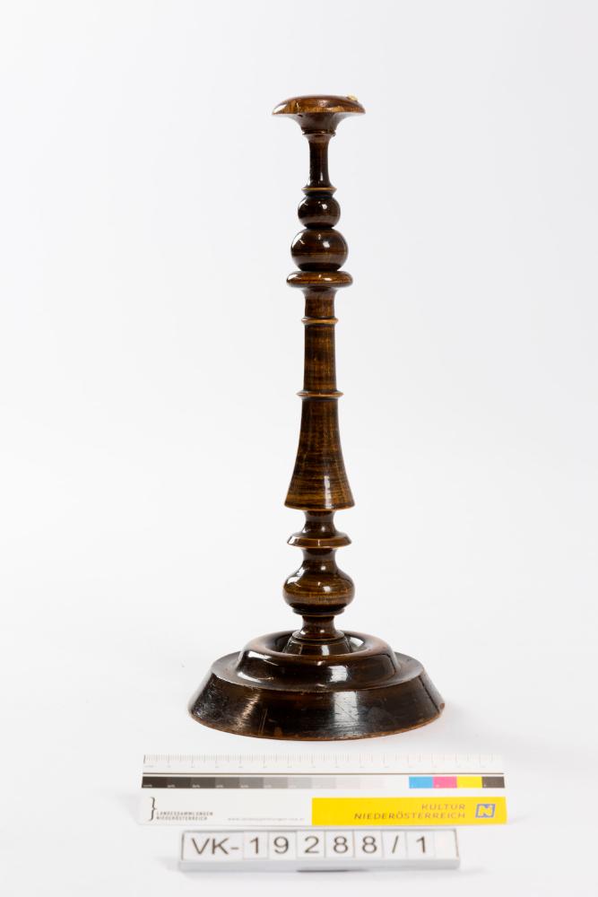 Brauner gedrechselte Hutständer aus Holz mit pilzförmiger Auflage.