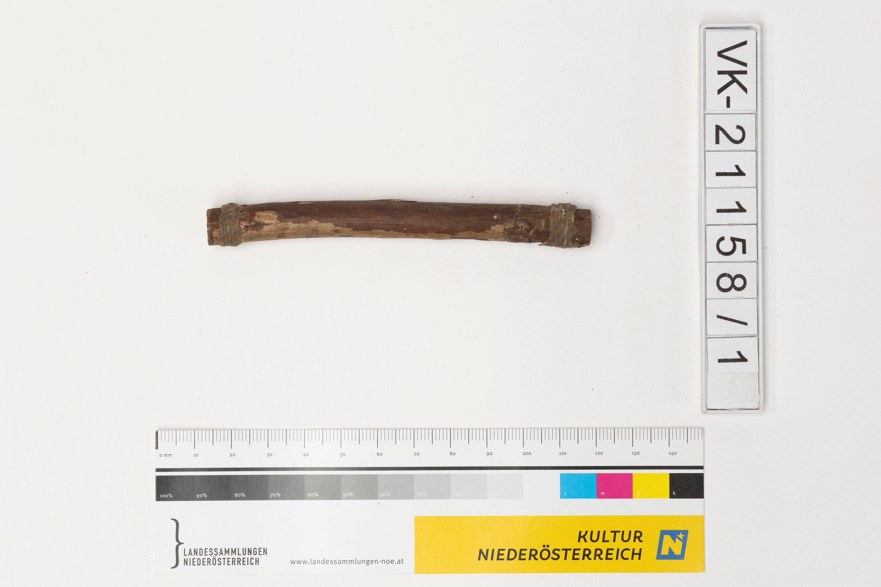 Hohles Schilfröhrchen, an beiden Enden mit Garn umwickelt.