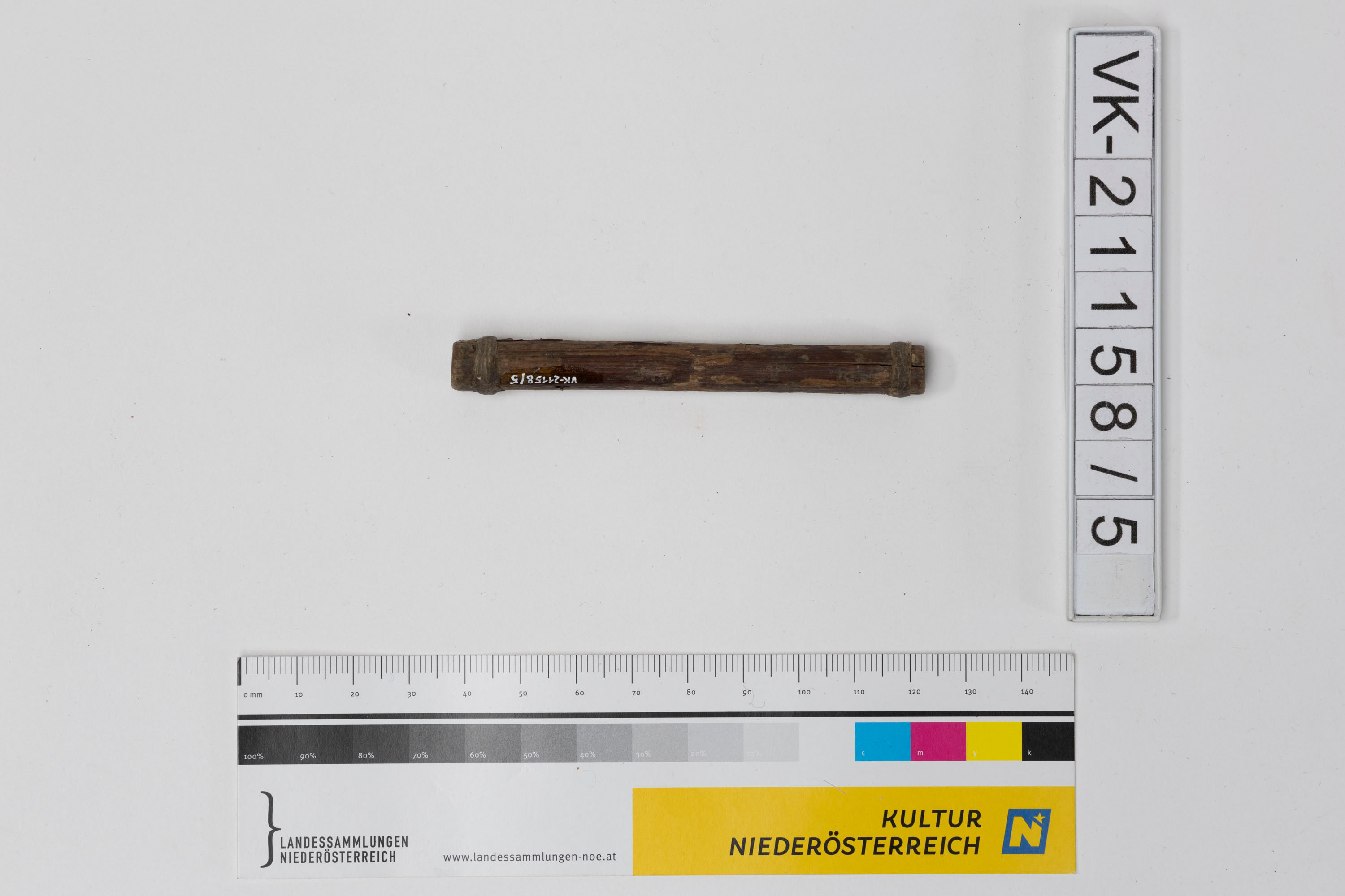 Hohles Schilfröhrchen, an beiden Enden mit Garn umwickelt.