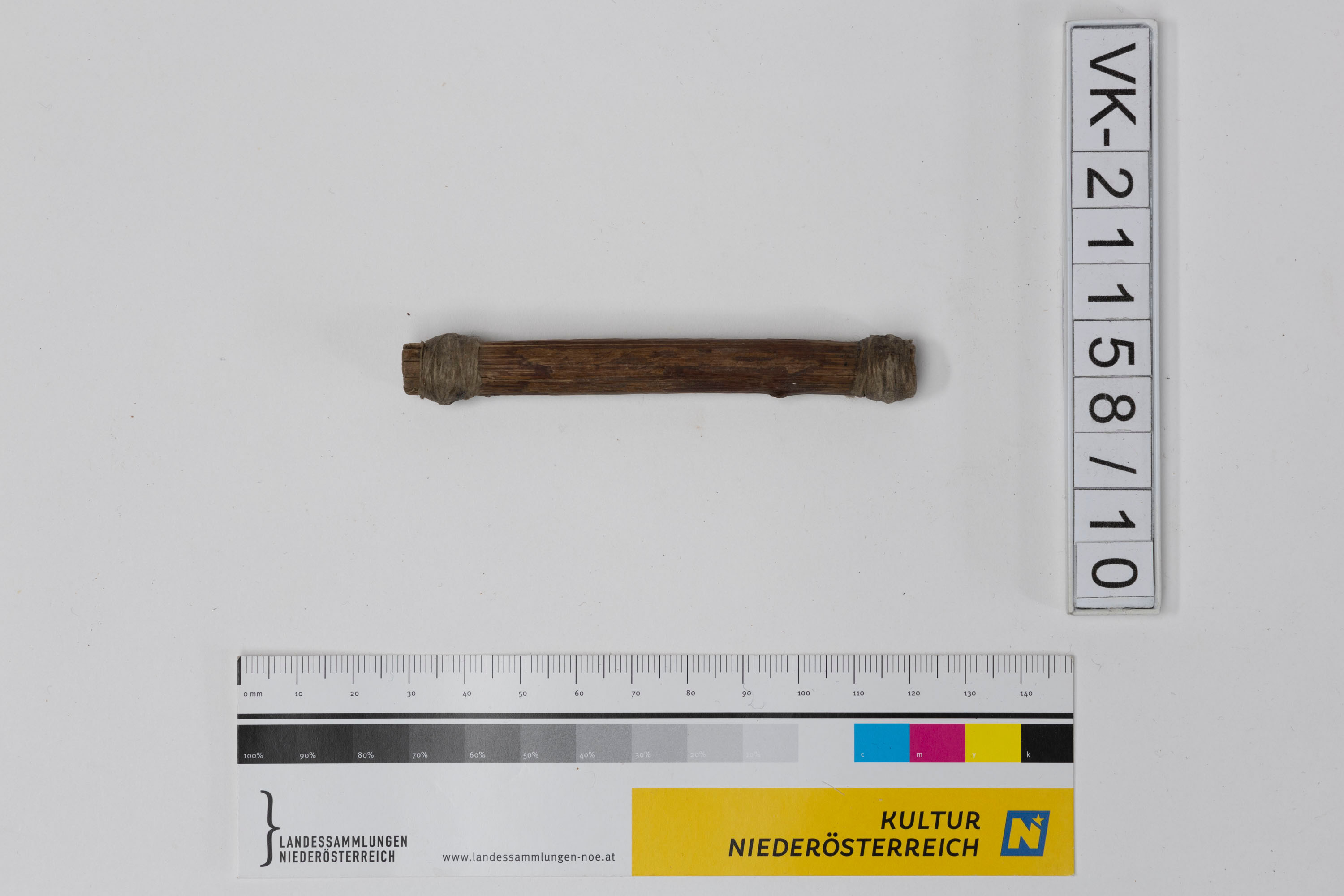 Hohles Schilfröhrchen, an beiden Enden mit Garn umwickelt.