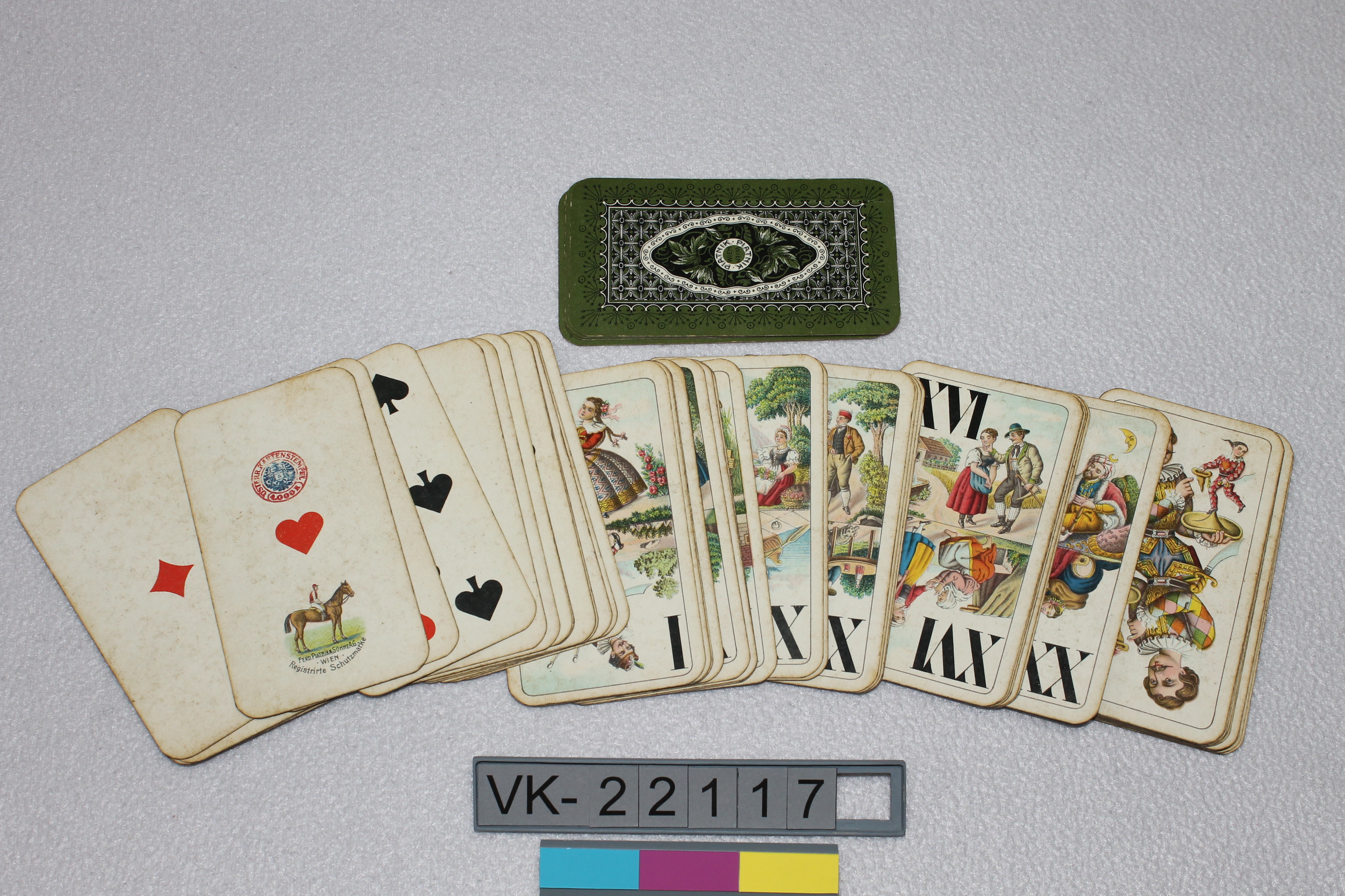 Tarockspiel (54 Karten), Rückseite schwarz-grün gemustert mit Aufdruck: "PIATNIK WIEN".