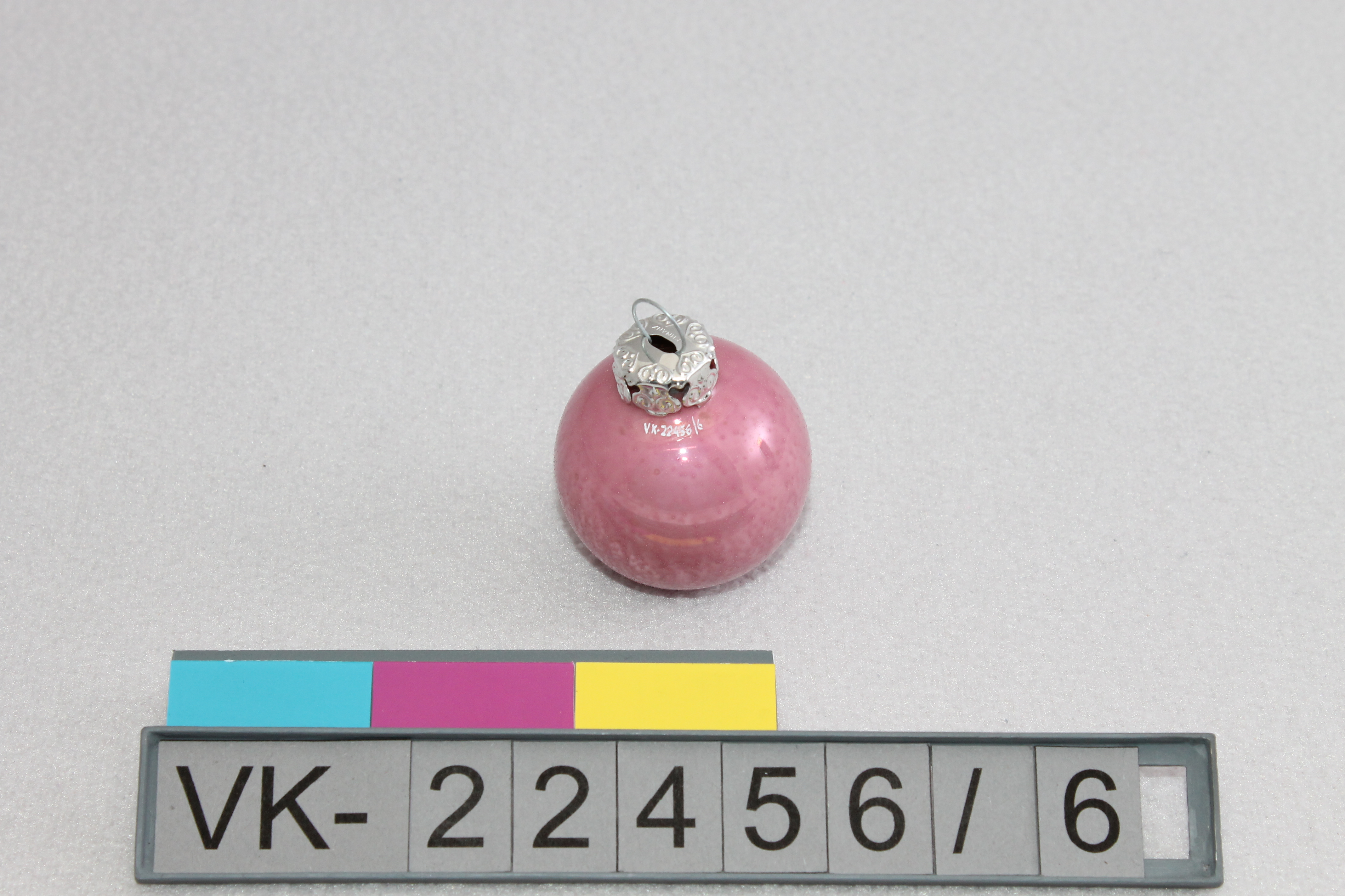 Rose Glaskugel, ornamental verzierte silberne Aufhängevorrichtung mit Prägung: "GERMANY".
