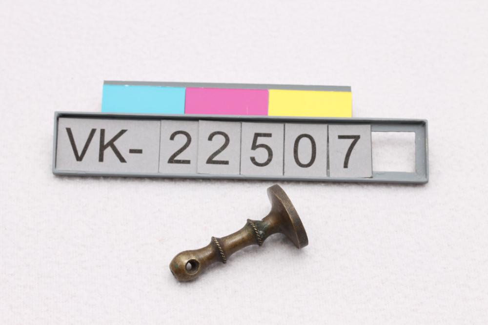 Stempel: "K. Strebinger" mit einem Rinderkopf. Der Stempel hat einen angeformten Stiel.