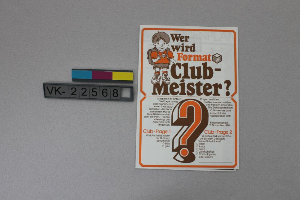 Stundenplan: Faltblatt mit Stundenplan 1980/81, Werbung für "Format" und einem Gewinnspiel. Der Druck ist in braun und orange ausgeführt. Das Objekt befindet sich in der Mappe mit der Inventarnummer VK-22566.
