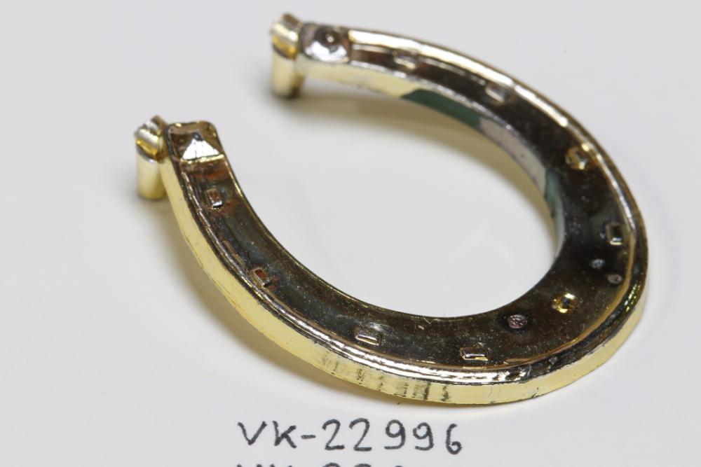 Kleines goldfarbenes Hufeisen aus Kunststoff.